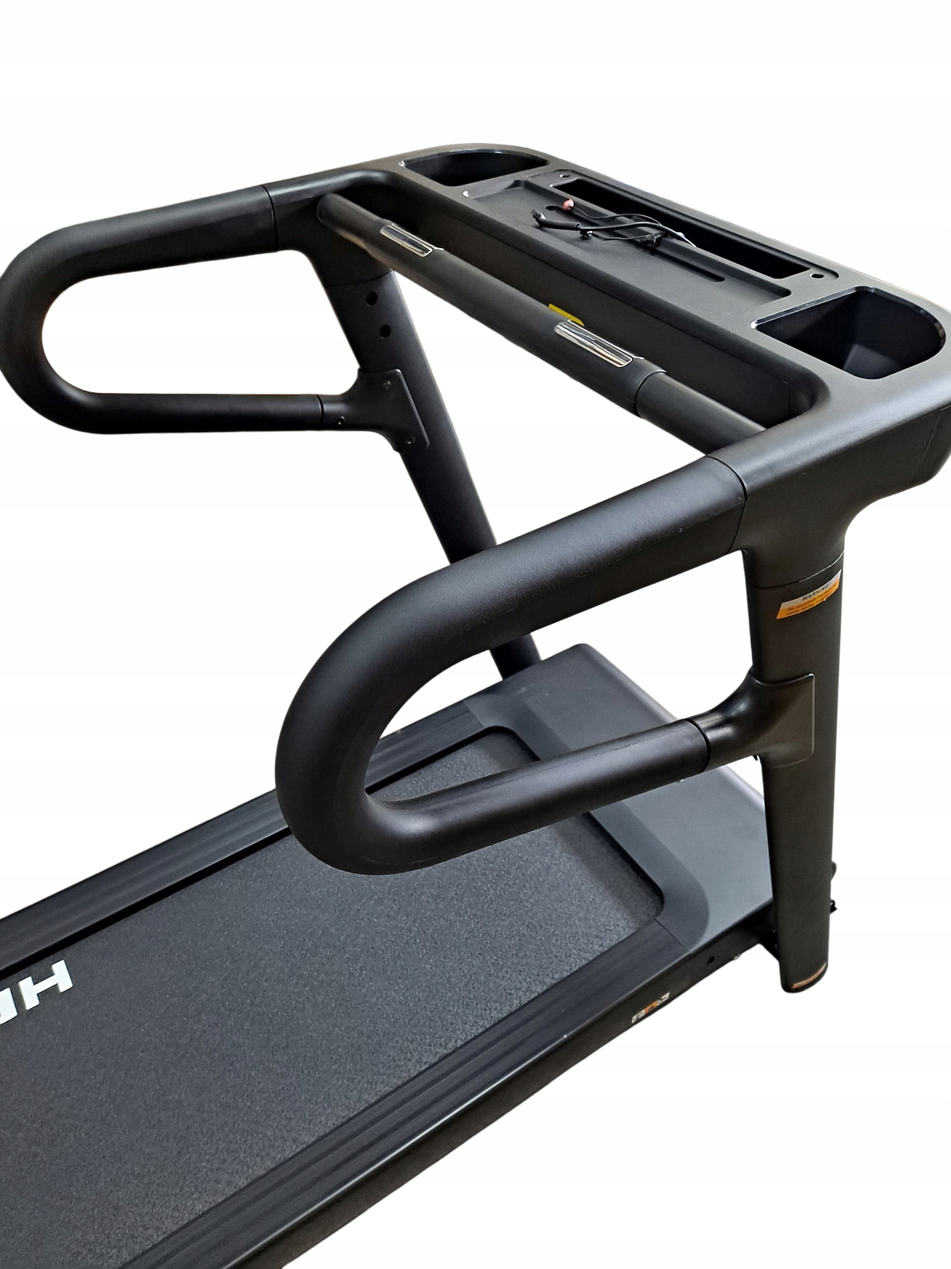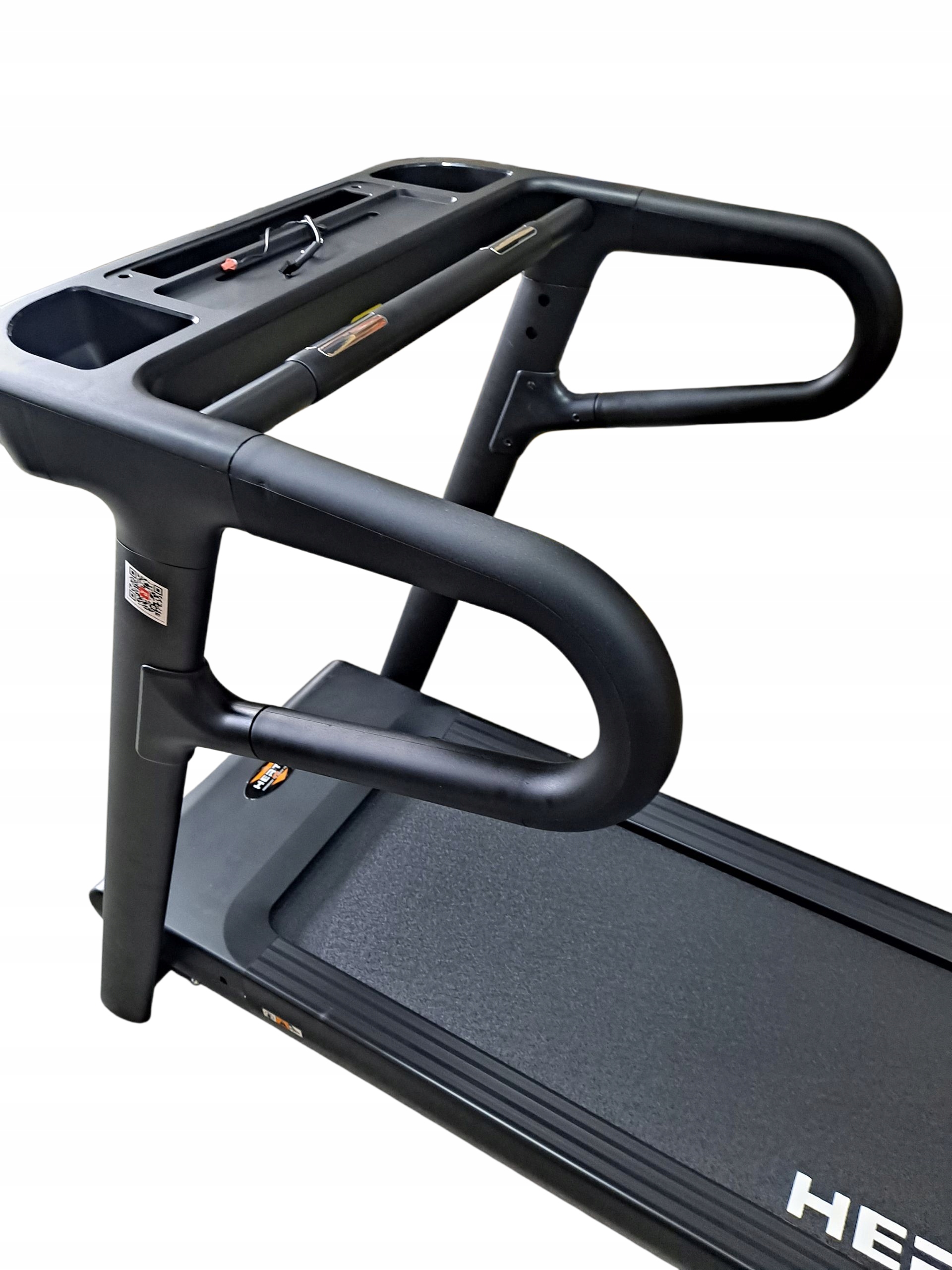 Bieżnia ma również półkę, która może służyć do przechowywania telefonu, tabletu, czy innych potrzebnych akcesoriów. Dodatkowo dwie półki na bidon umożliwiają postawienie butelki, kubka z wodą czy ulubionym napojem, dzięki czemu zawsze będziesz miał pod ręką coś do picia.
