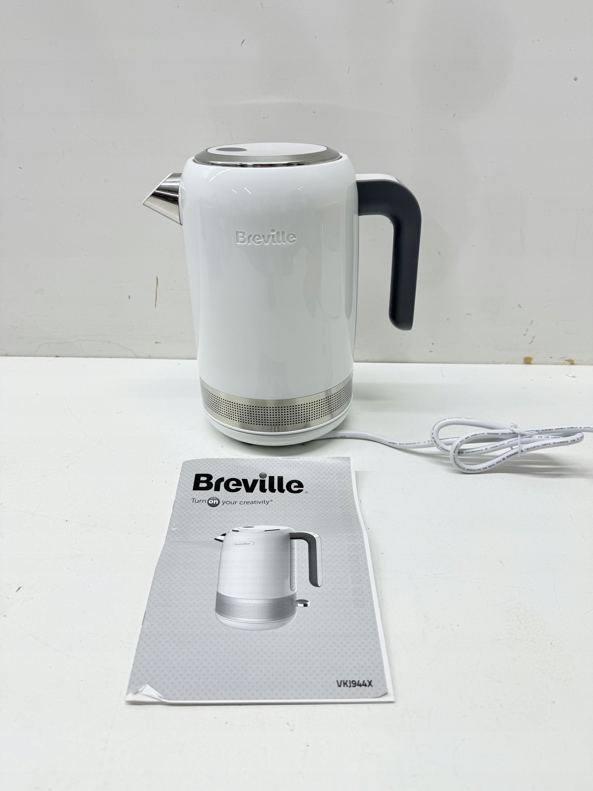 Czajnik Breville idealnie pasuje do każdego wystroju kuchni. Jego minimalistyczny design z akcentami ze stali nierdzewnej i błyszczącym wykończeniem idealnie prezentuje się na blacie kuchennym. Czajnik Breville High Gloss VKJ944X pozwoli Ci zagotować dużą ilość wody (1,7 l) w rekordowym czasie dzięki mocy 2400 W. Czajnik wyłącza się automatycznie po zakończeniu gotowania, co zwiększa bezpieczeństwo.
