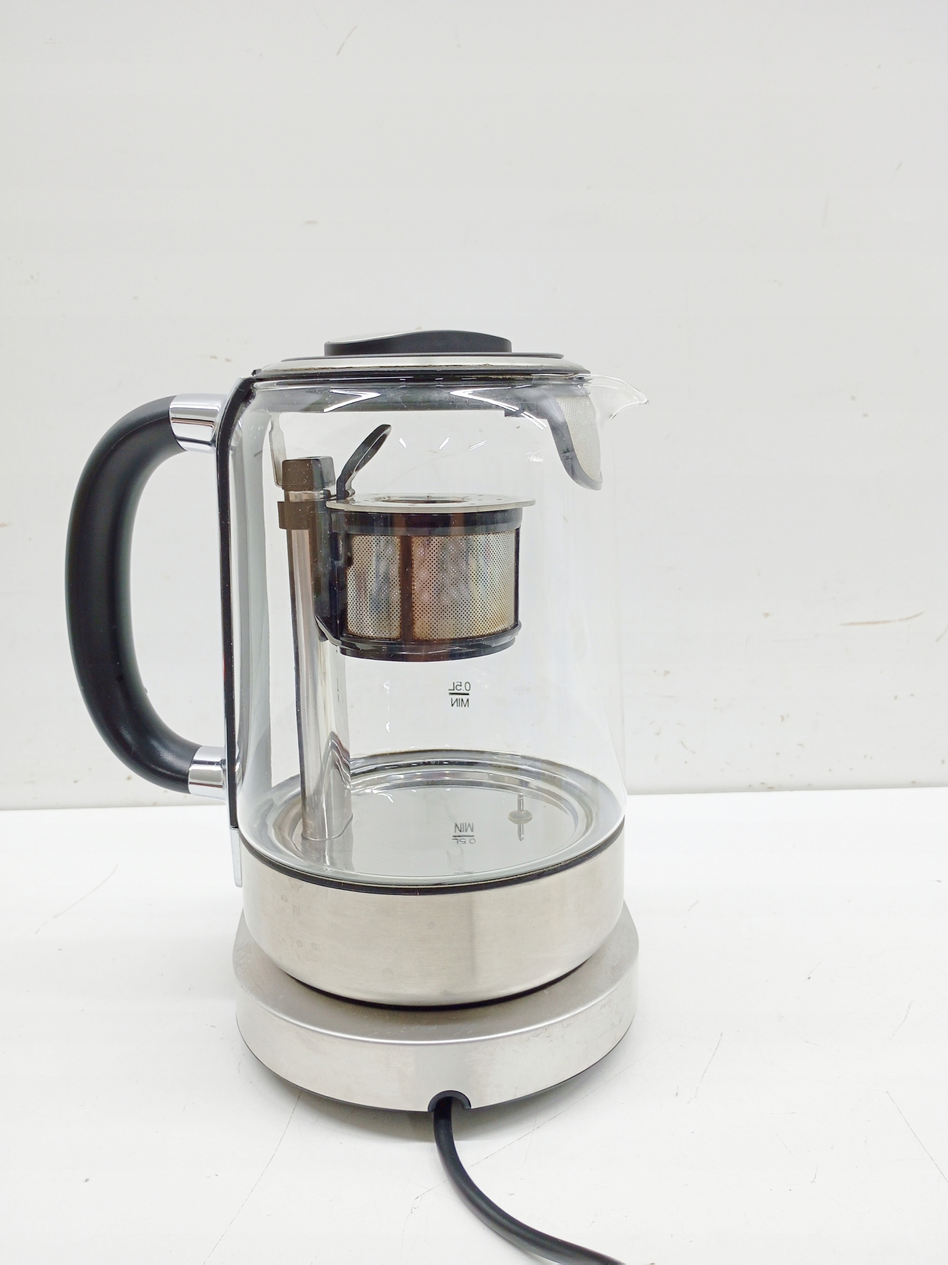 gdy osiągnie idealną temperaturę wybranej herbaty, sitko się obniża i po idealnym czasie parzenia rośnie