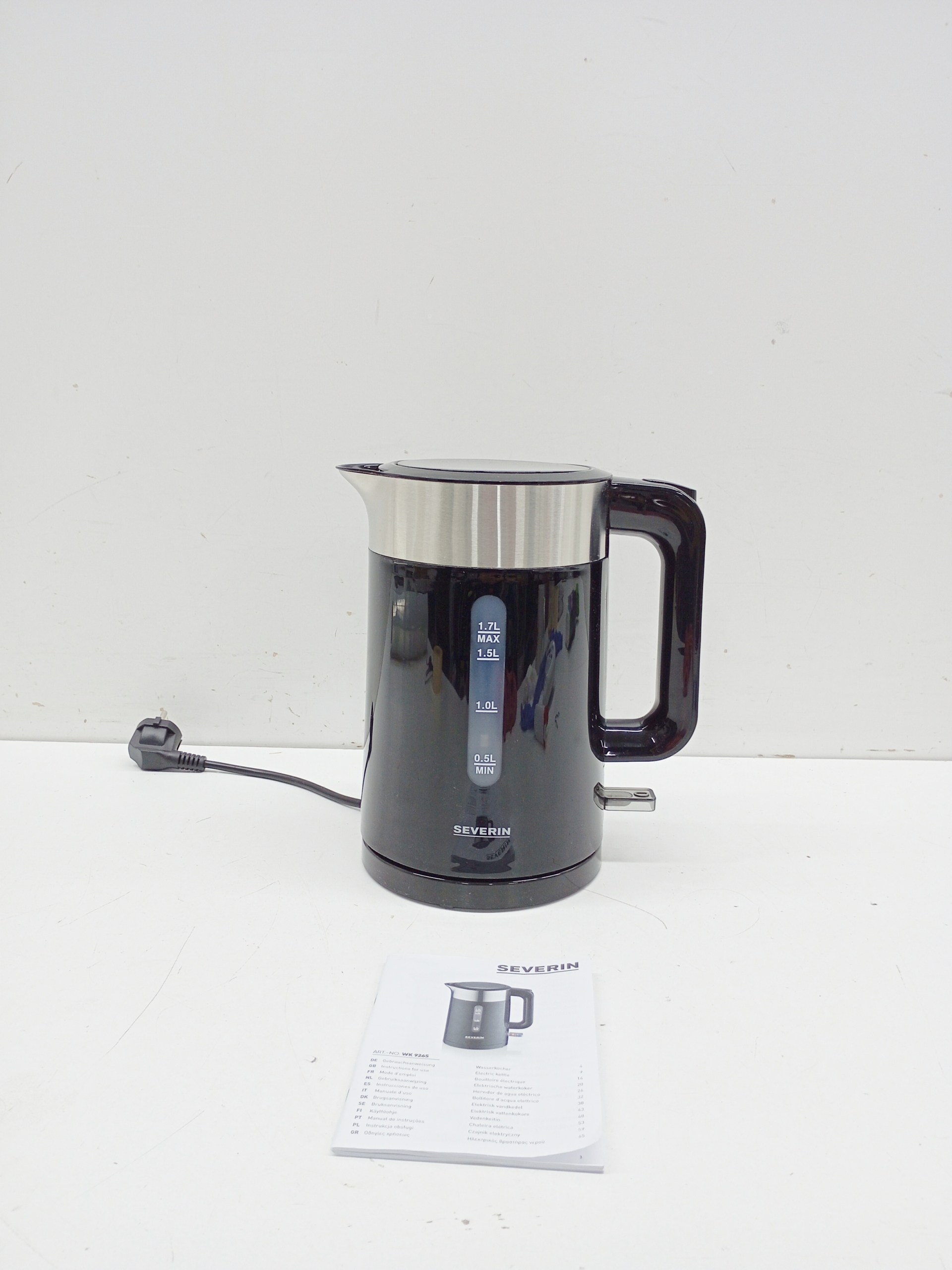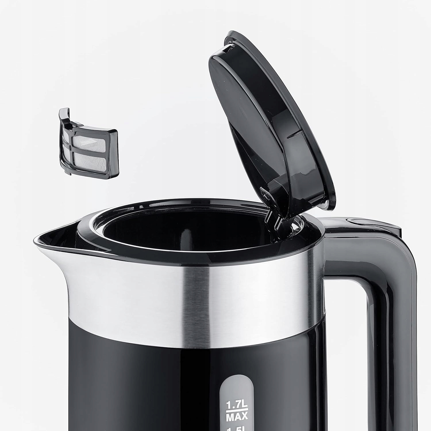 Czajnik elektryczny pasujacy do każdej kucheni z tworzywa sztucznego z elementami ze stali nierdzewnej o pojemności 1,7 litra i mocy 2200 W
