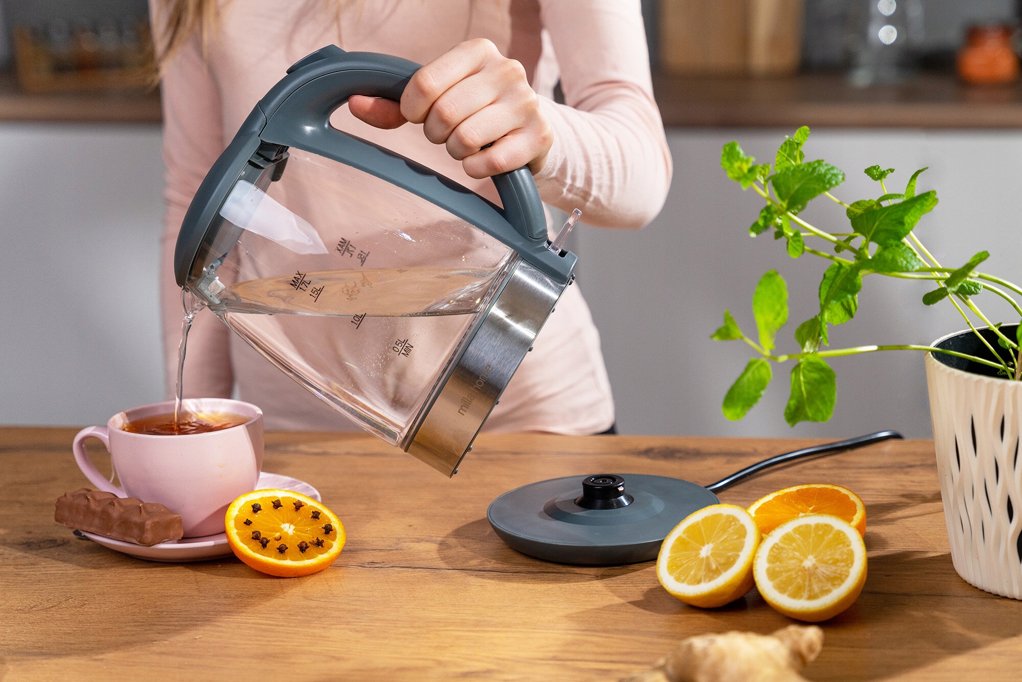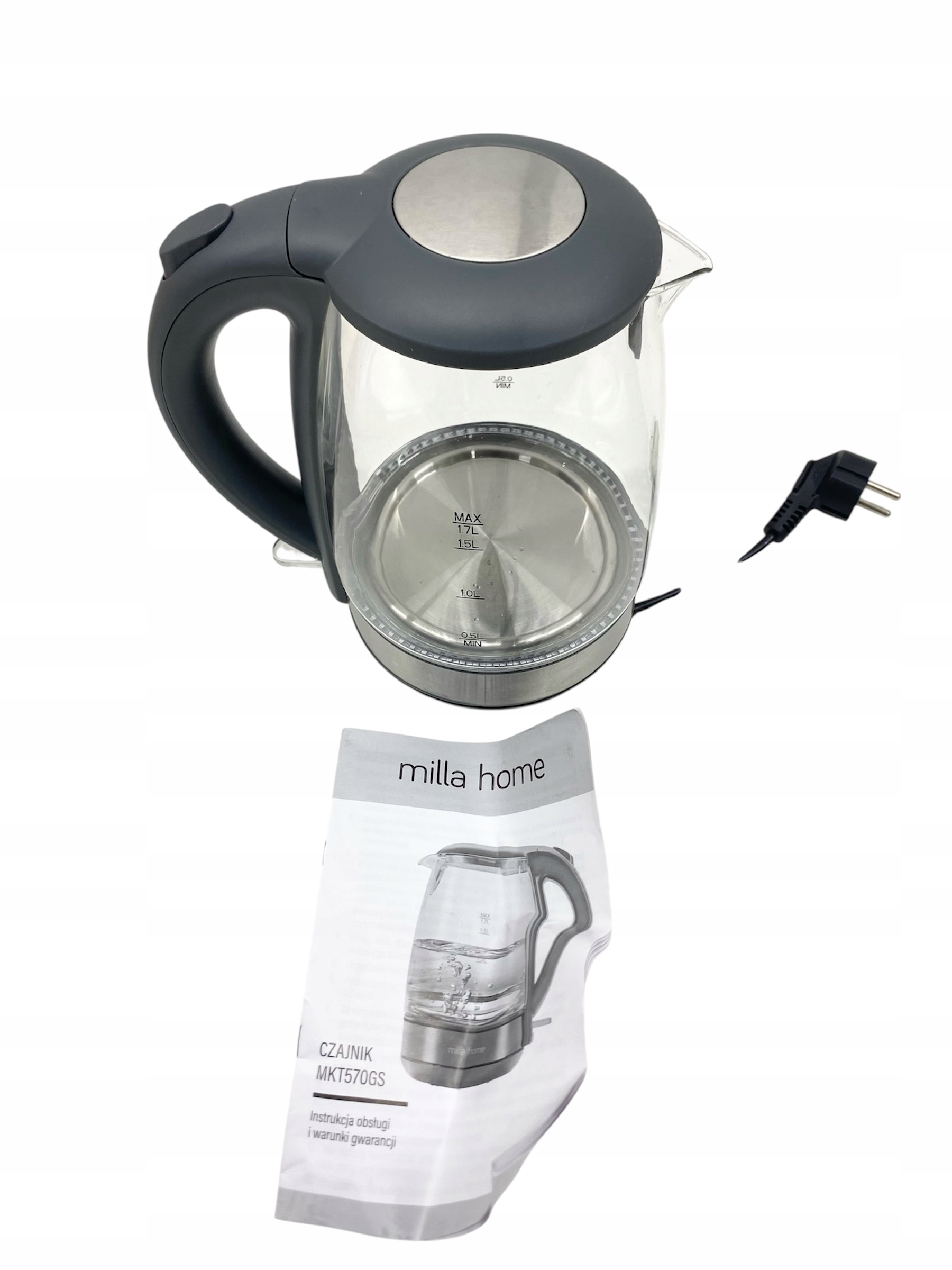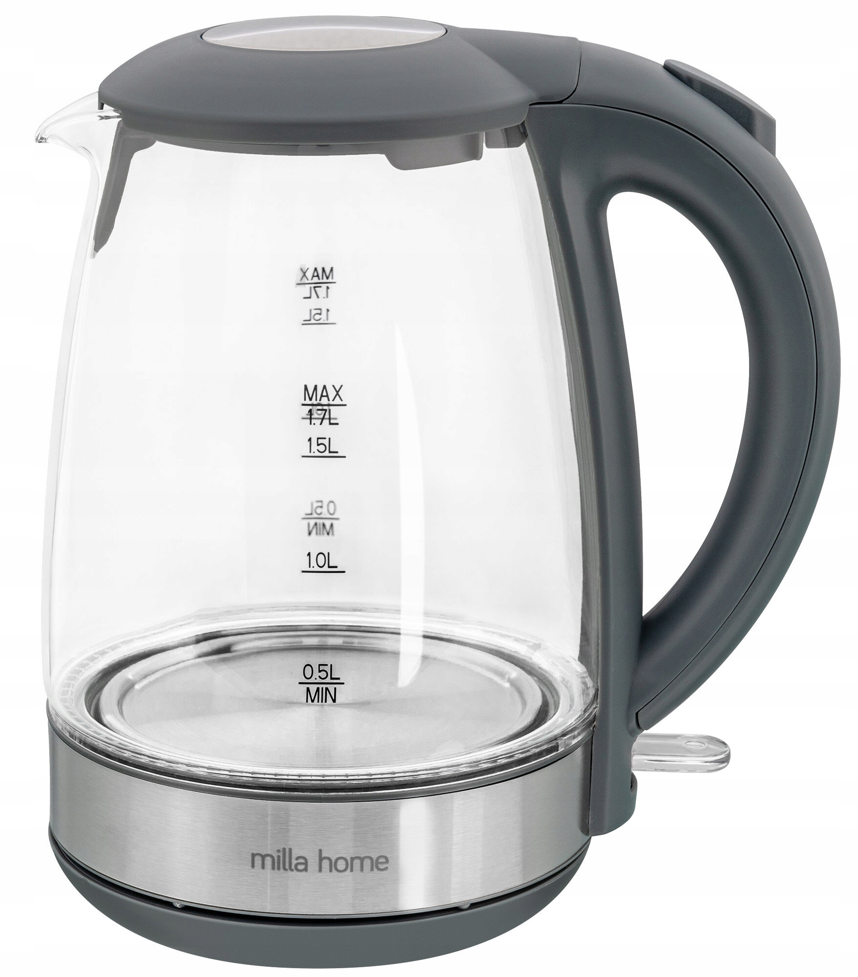 MILLA HOME MKT570GS to czajnik elektryczny, który charakteryzuje się pojemnością 1,7-litra oraz mocą aż 2200 W. Dzięki temu bez problemu przygotujesz w szybki i łatwy sposób wodę na gorące napoje nawet dla siedmiu osób, więc będzie idealny nawet dla dużej rodziny czy grupy przyjaciół.