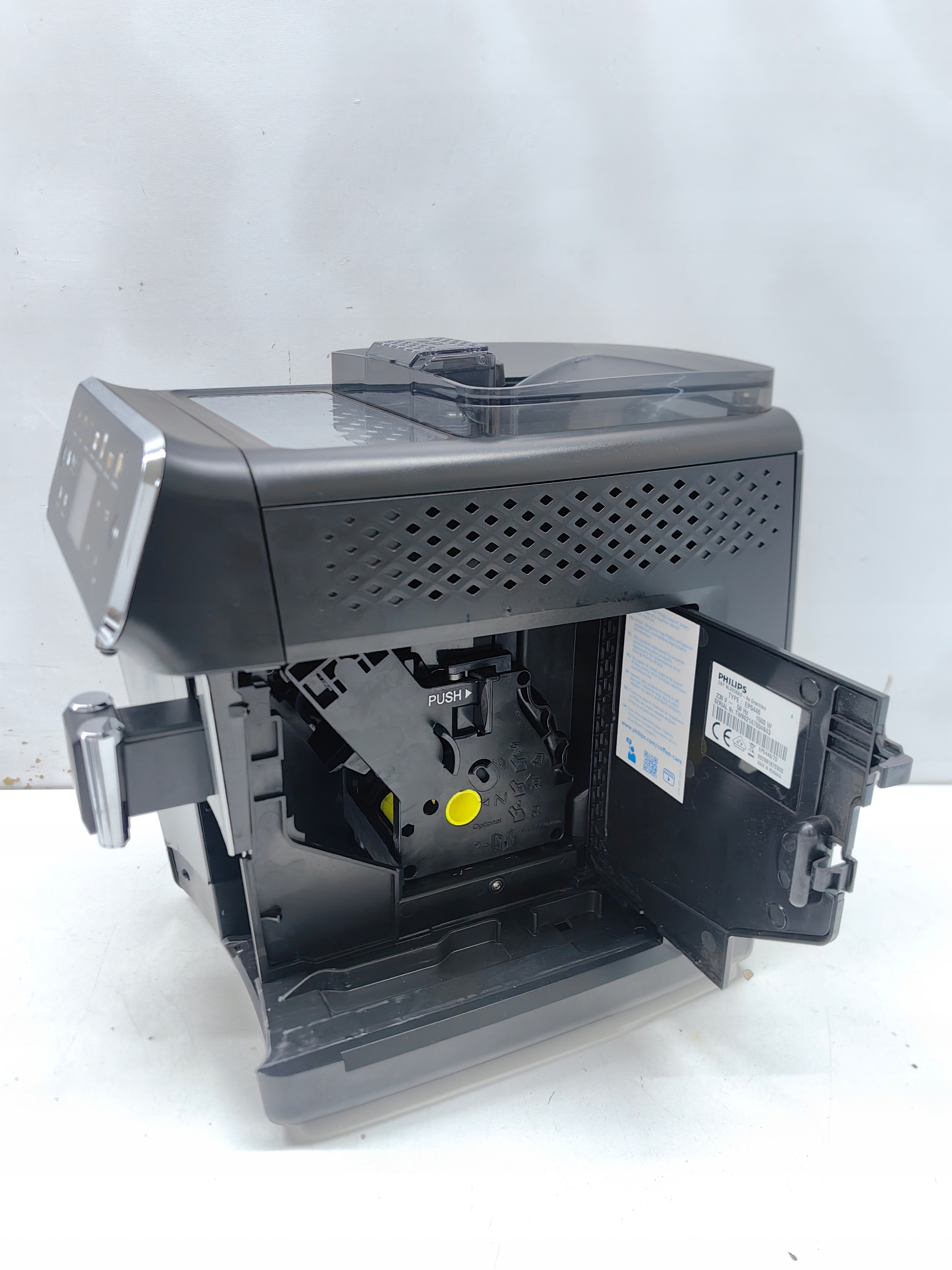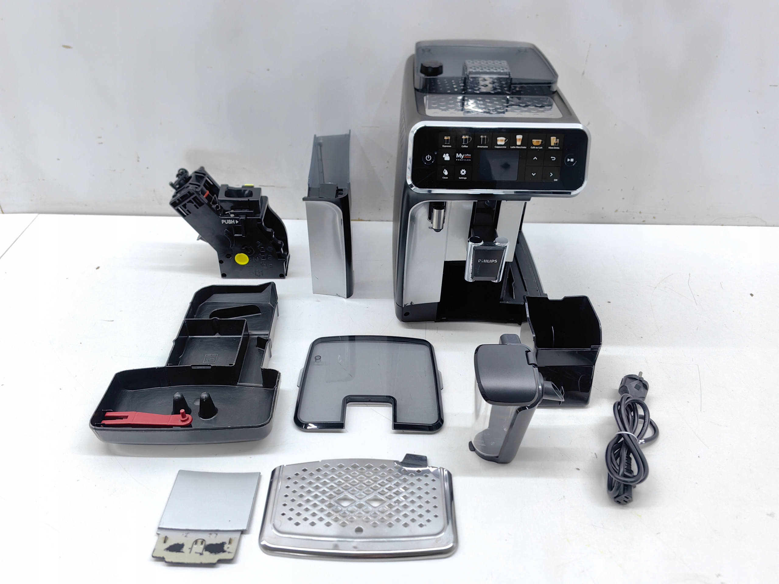 STAN TOWARU : UŻYWANY, DOKŁADNIE SPRAWDZONY PRZEZ AUTORYZOWANY SERWIS, 100% SPRAWNY, STAN TECHNICZNY BARDZO DOBRY, STAN WIZUALNY DOBRY, EKSPRES MA ZROBIONE OKOŁO 3318 NAPOI, CO ZOSTAŁO PRZEDSTAWIONE NA REALNYM ZDJĘCIU, URZĄDZENIE POSIADA ŚLADY UŻYTKOWANIA W POSTACI RYS, PRZETARĆ I NIEZNACZNYCH ZABRUDZEŃ, EKSPRES ZOSTAŁ PROFESJONALNIE WYCZYSZCZONY ORAZ ODKAMIENIONY I JEST PRZYGOTOWANY ODRAZU DO UŻYTKOWANIA, W ZESTAWIE BRAKUJE FILTRA WODY, MIARKI DO KAWY I SMARU, ZAŁĄCZONE WYPOSAŻENIE DOKŁADNIE UKAZANE NA REALNYCH ZDJĘCIACH, BRAK INSTRUKCJI OBSŁUGI, OPAKOWANIE ORYGINALNE ZE ŚLADAMI MAGAZYNOWANIA.