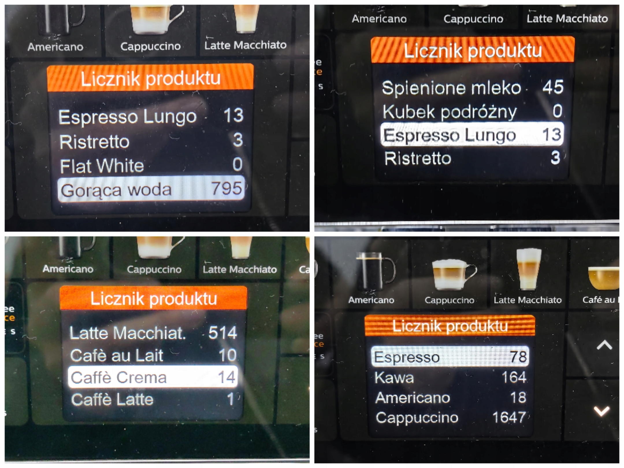 Zdecyduj, na którą spośród aż 12 rodzajów kaw masz dzisiaj ochotę. Wybieraj spośród klasycznych kaw czarnych: Espresso, Café crema, Americano, lub mlecznych: Café au lait, Flat white, Cappuccino, Caffé Latte macchiato czy Café latte.