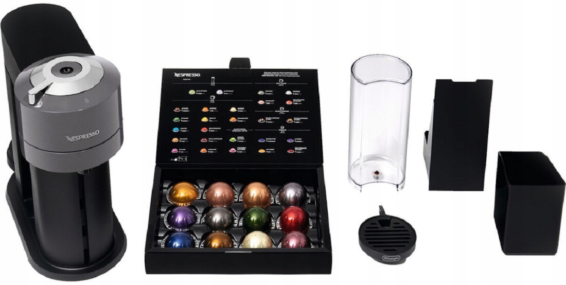 Ekspres DELONGHI Nespresso Vertuo Next ENV 120.GY Szary oferuje pełną gamę sposobów parzenia kawy w pięciu różnych rozmiarach: Espresso (40 ml), Double Espresso (80 ml), Gran Lungo (150 ml), Mug (230 ml) i Alto (414 ml), a wszystko za naciśnięciem jednego przycisku. To świat nieskończonych możliwości, dopasowanych do każdego gustu i preferencji. Vertuo Next oferuje innowacyjną technologię ekstrakcji kawy CENTRIFUSION™, która została stworzona, by móc zaoferować Ci szeroki wybór rozmiarów kawy, przy zachowaniu jej intensywności i głębi smaku.