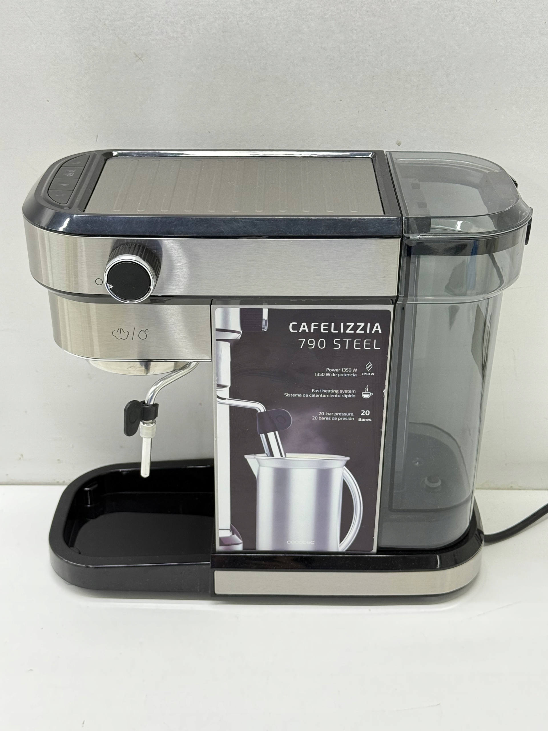 Ekspres CECOTEC Cafelizzia w kolorze srebrnym wyróżnia się prostym, ale eleganckim wyglądem. Dzięki swojej uniwersalności, urządzenie idealnie wkomponuje się w wystrój wielu kuchni i w krótkim czasie stanie się urządzeniem, bez którego trudno będzie sobie wyobrazić poranek czy wizytę gości.