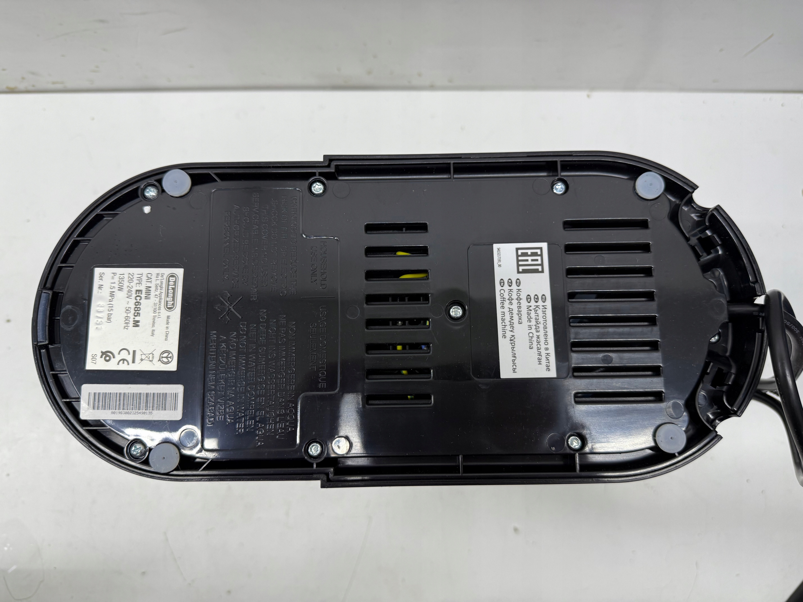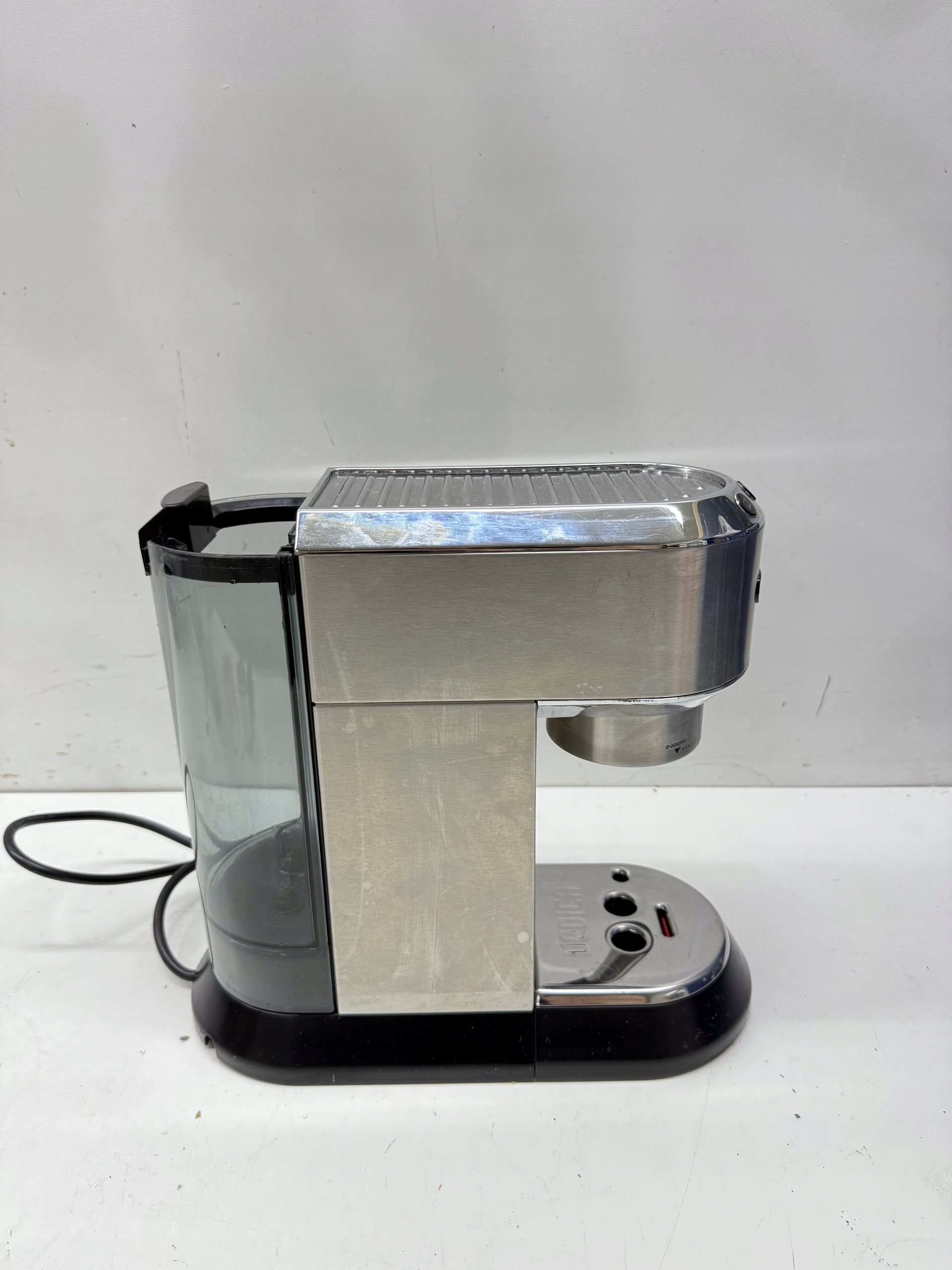 STAN TOWARU: UŻYWANY, DOKŁADNIE SPRAWDZONY PRZEZ AUTORYZOWANY SERWIS, 100% SPRAWNY, STAN TECHNICZNY I WIZUALNY BARDZO DOBRY, URZĄDZENIE POSIADA RYSY ORAZ PRZETARCIA (widoczne na zdjęciach poniżej), W ZESTAWIE BAKUJE SITKA NA JEDNĄ KAWĘ, ŁYŻECZKI ORAZ POKRYWKI NA POJEMNIK DLA WODY, STAN FAKTYCZNY TOWARU UKAZANY NA REALNYCH ZDJĘCIACH PONIŻEJ NASZEJ AUKCJI, BRAK INSTRUKCJI OBSŁUGI, OPAKOWANIE ORYGINALNE ZE ŚLADAMI MAGAZYNOWANIA.