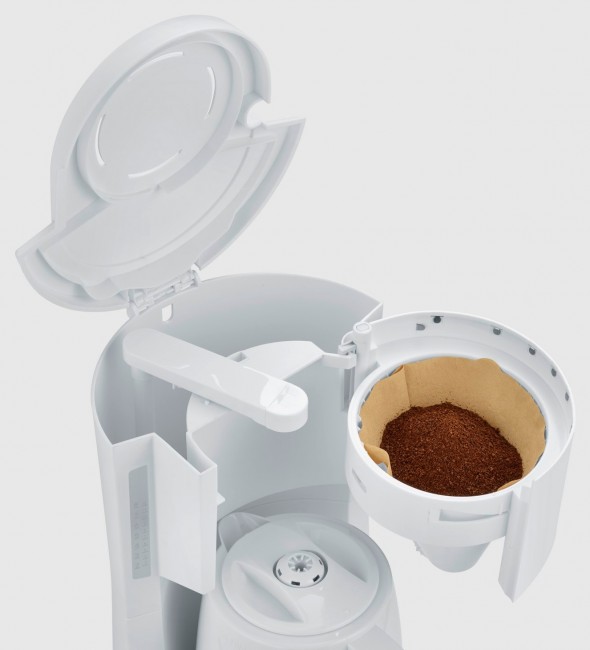 Ekspres SEVERIN KA 9256 posiada wychylne ramię na filtr 1 x 4 łatwy do napełniania zmieloną kawą, oraz posiada blokadę kapania, dzięki czemu unika się brudzącego i denerwującego kapania.
