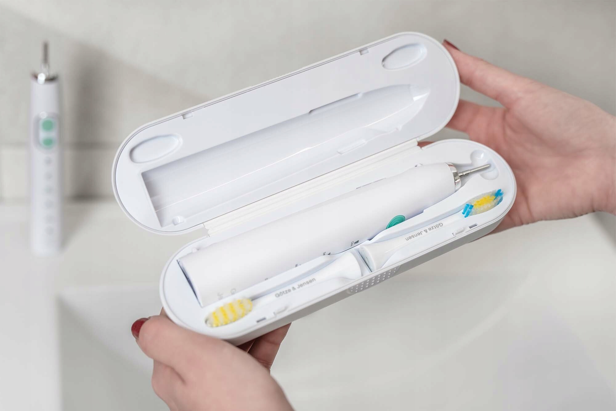 Etui pasuje do następujących modeli szczoteczek GÖTZE & JENSEN: ST700, ST900, ST905, STS950S.