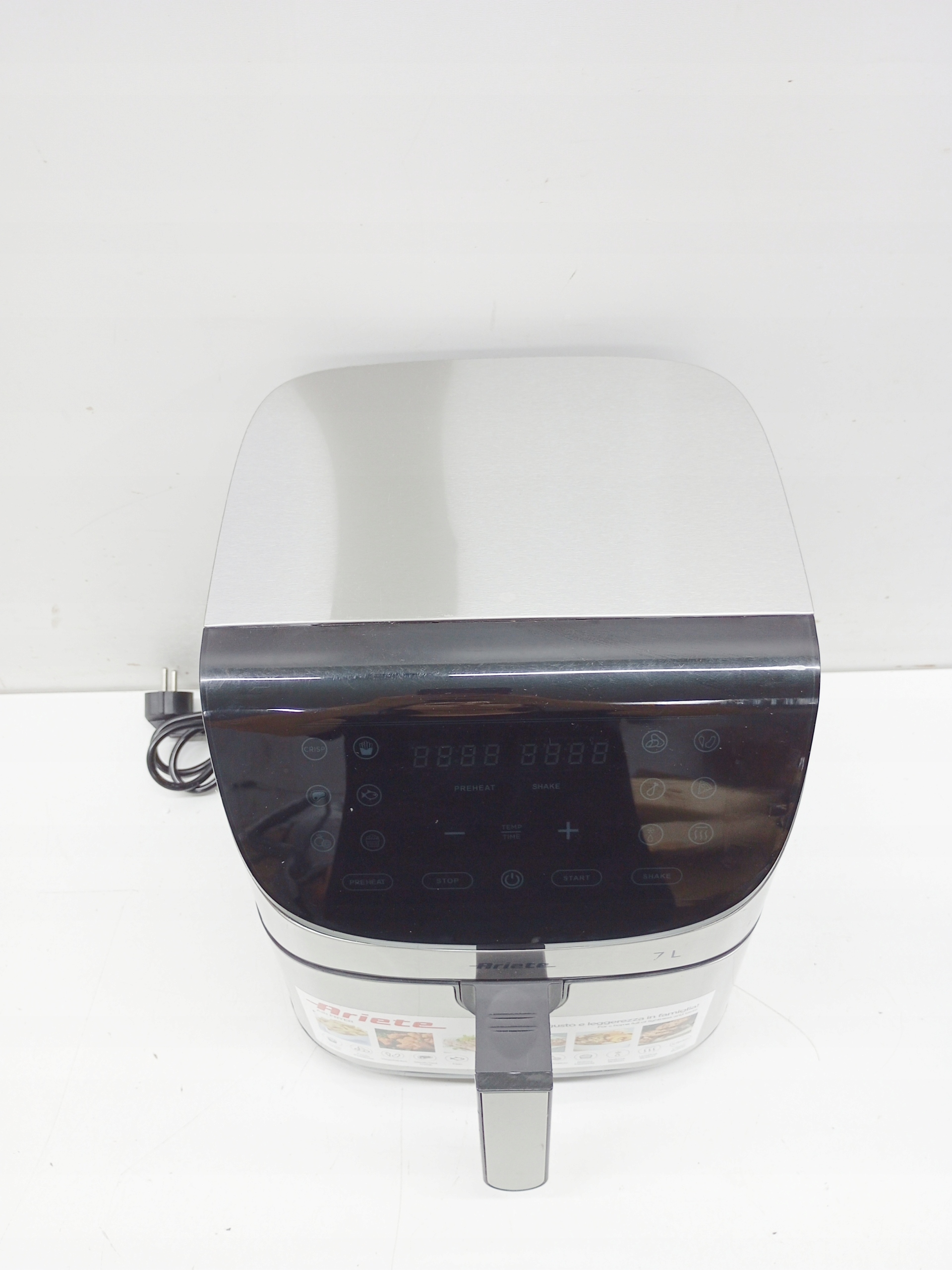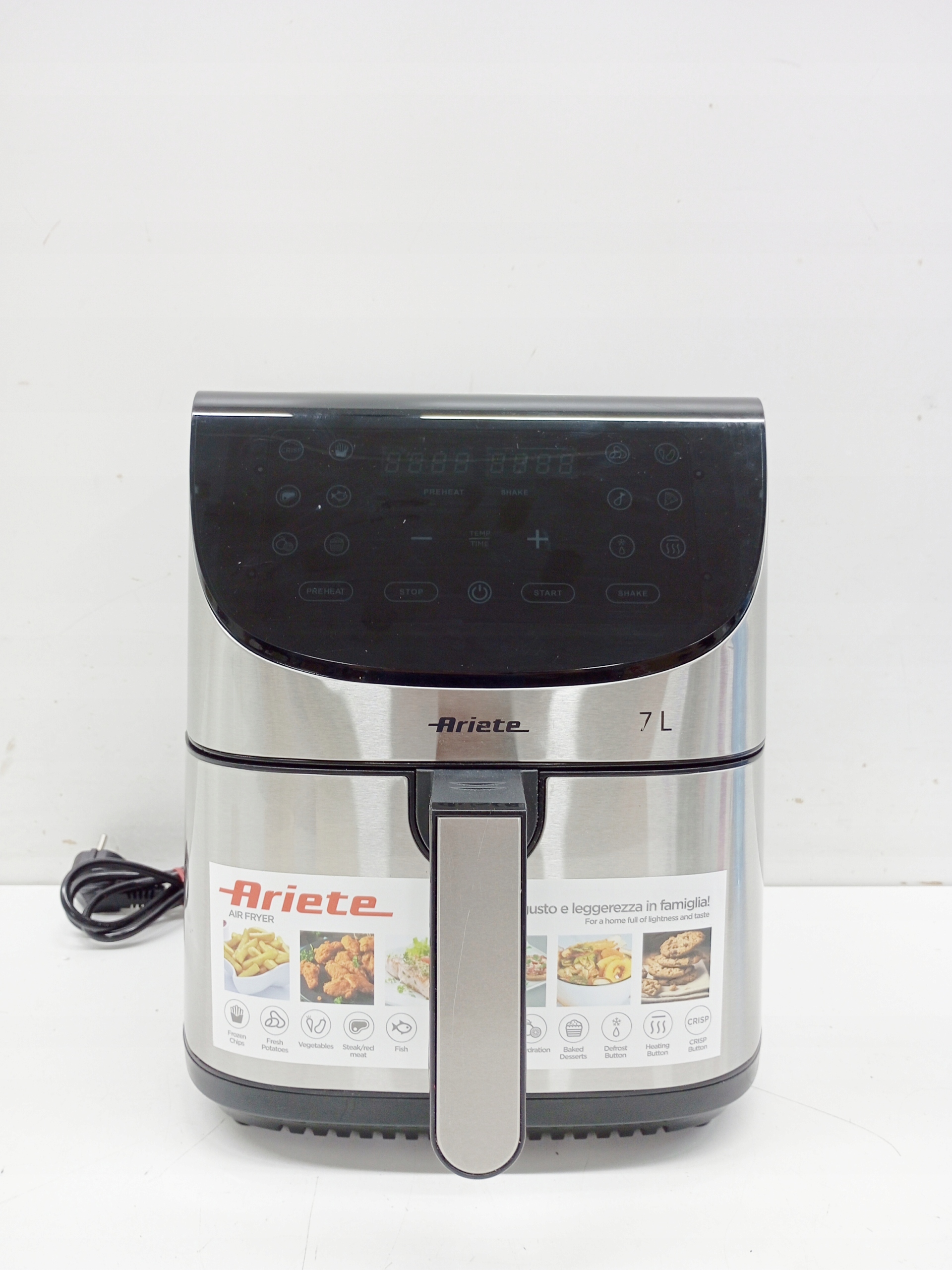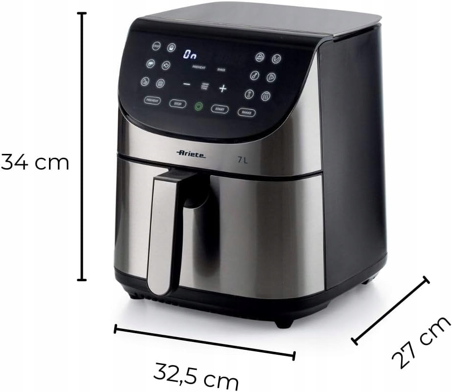 Pojemność frytkownicy wynosi 7 litrów, co pozwala na przygotowanie dużych porcji potraw – idealne rozwiązanie dla rodzin. Wyjmowana misa z uchwytem i nieprzywierającą powłoką ułatwia czyszczenie, a metalowy front dodaje elegancji, dzięki czemu urządzenie prezentuje się stylowo i estetycznie w każdej kuchni.