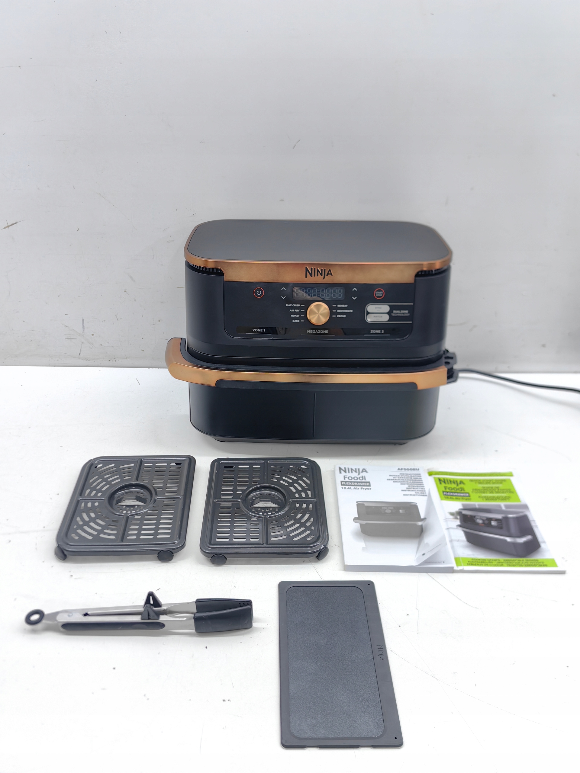Ninja AF500EUCP, zaskakująca pod wieloma względami beztłuszczowa frytkownica to Twój niezawodny partner w wielu zadaniach kulinarnych. Jednak jeśli zależy Ci na pełnej kontroli nad procesem przygotowywania posiłków, nie ma problemu! Dzięki możliwości precyzyjnego monitorowania czasu, temperatury i prędkości wiatraków przez cały czas gotowania, masz pełną kontrolę nad oboma koszami. Wystarczy tylko jeden palec.