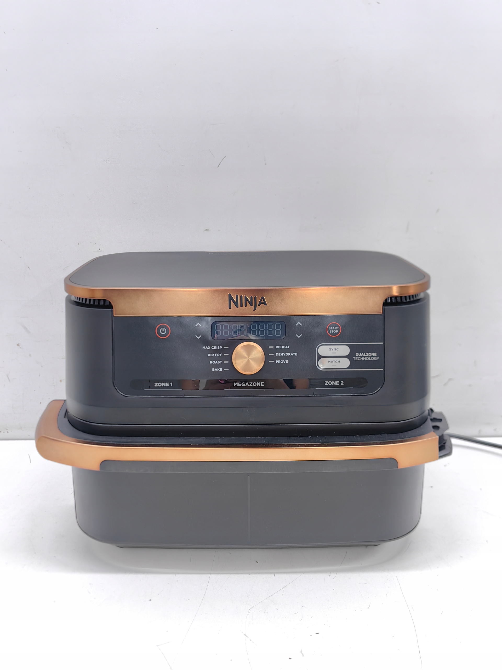 Dzięki technologii Dual Zone możesz użyć rozdzielacza, aby podzielić MegaZone na 2 niezależne strefy gotowania. Gotuj 2 dania na 2 różne sposoby - i oba będą gotowe w tym samym czasie! Połącz funkcje przygotowywania, czasy i temperatury w każdej strefie, a funkcja SYNC gwarantuje, że obie potrawy będą gotowe w tym samym czasie. Idealne do serwowania świeżo przygotowanych dań głównych i dodatków razem lub dla dwóch różnych smaków.