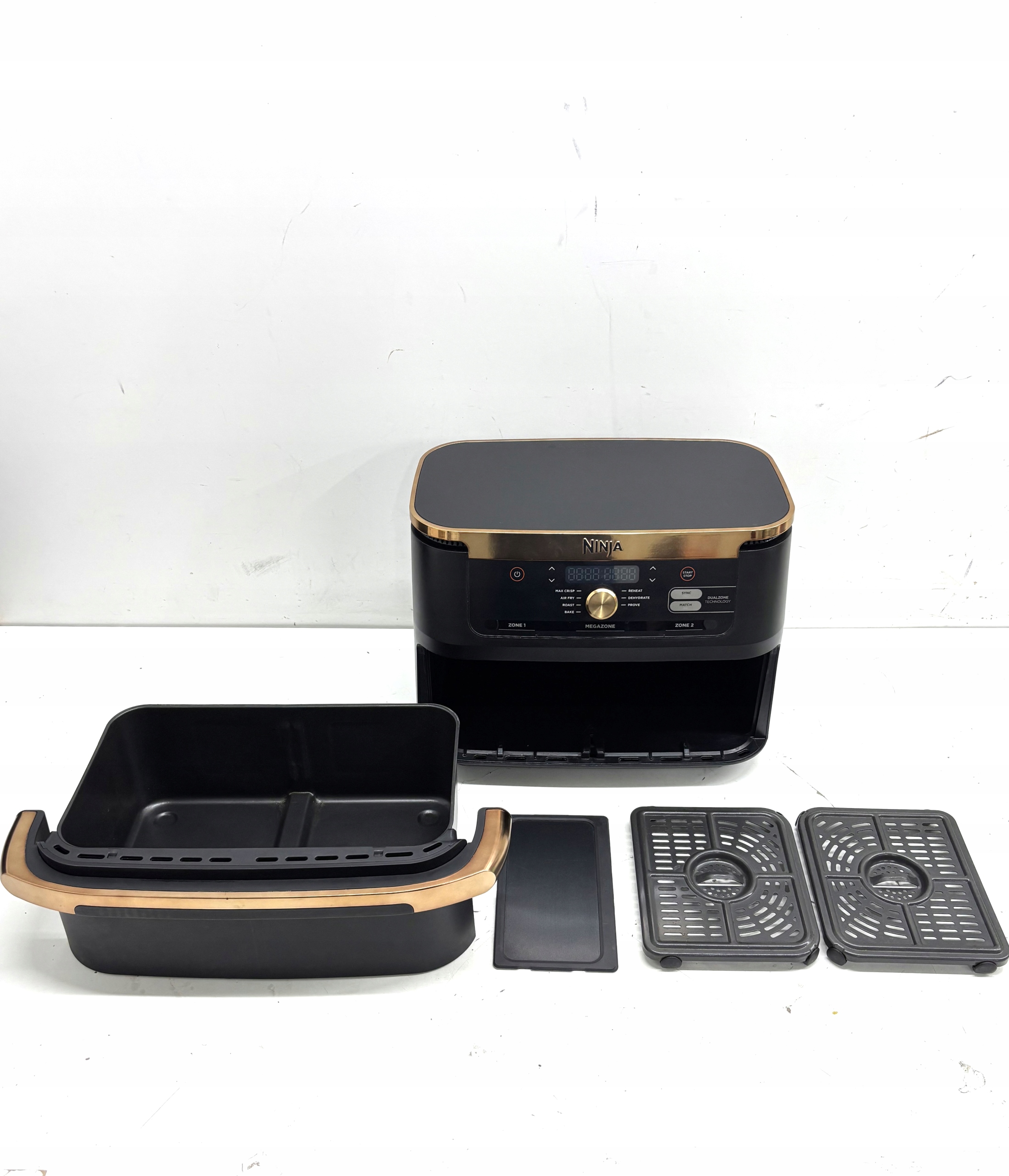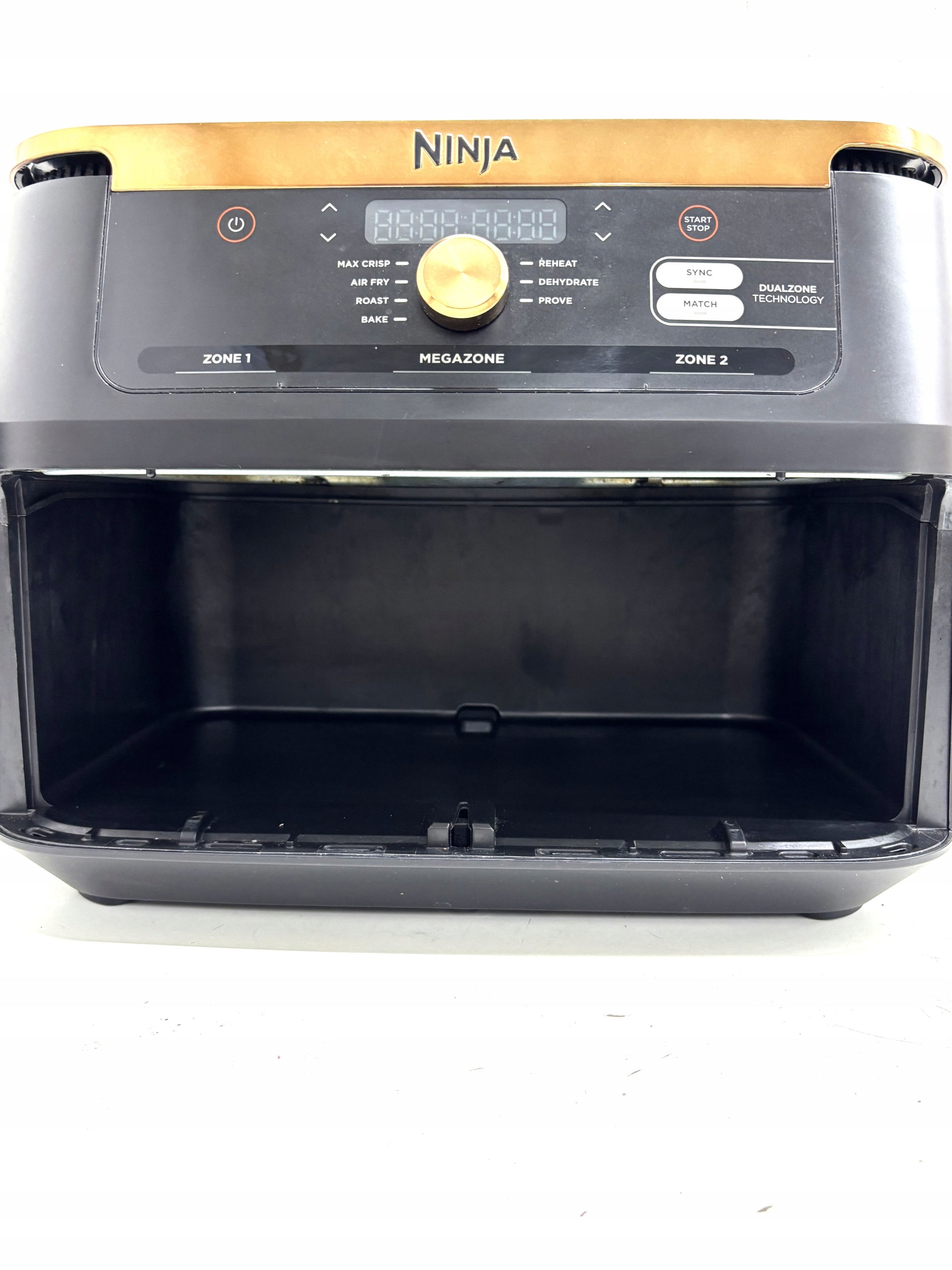Ninja AF500EUCP, zaskakująca pod wieloma względami beztłuszczowa frytkownica to Twój niezawodny partner w wielu zadaniach kulinarnych. Jednak jeśli zależy Ci na pełnej kontroli nad procesem przygotowywania posiłków, nie ma problemu! Dzięki możliwości precyzyjnego monitorowania czasu, temperatury i prędkości wiatraków przez cały czas gotowania, masz pełną kontrolę nad oboma koszami. Wystarczy tylko jeden palec.