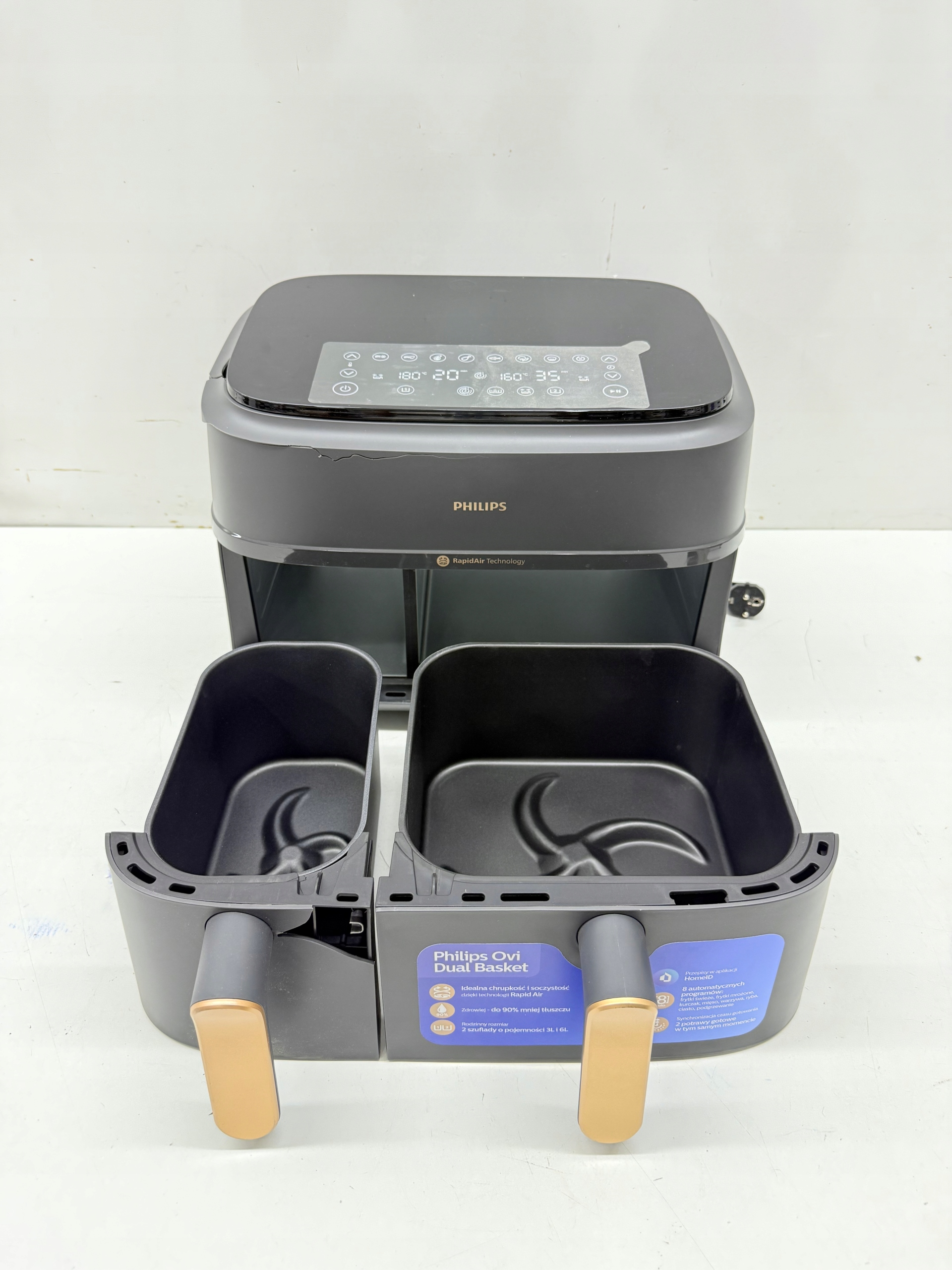 2 szuflady frytownicy: duża szuflada jest idealna do dań głównych, frytek i innych ulubionych dań. W mniejszej szufladzie możesz przyrządzić przystawki, warzywa i przekąski.