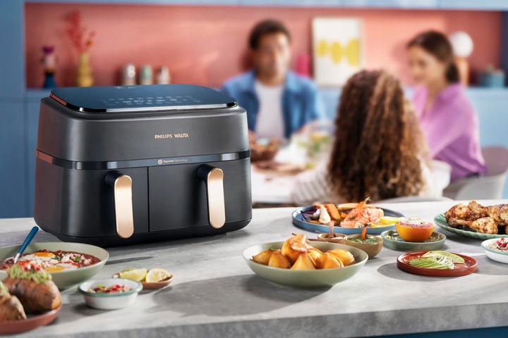 Frytownica na gorące powietrze Dual Basket Airfryer sprzyja oszczędzaniu, zużywając o 70% mniej energii niż standardowy piekarnik.**