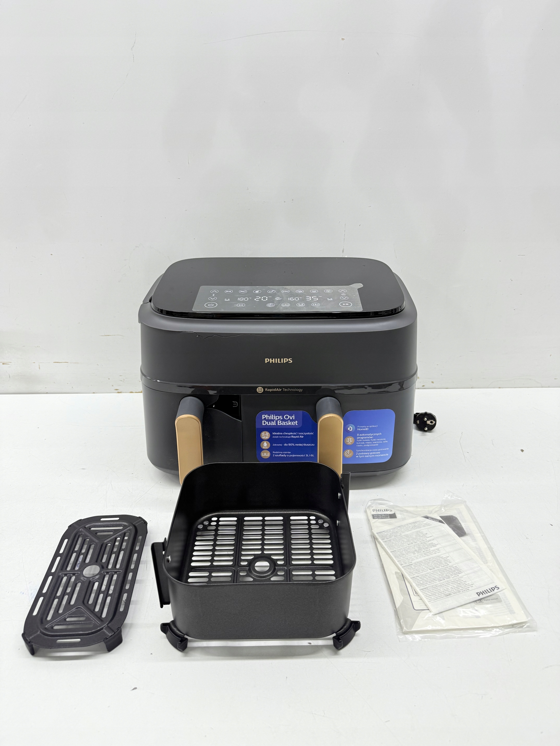 Najlepsza podwójna frytownica na gorące powietrze z dopasowanymi przepisami w aplikacji HomeID. Zobacz, jak krok po kroku przyrządzić setki pysznych posiłków dzięki odpowiednim ustawieniom frytownicy.