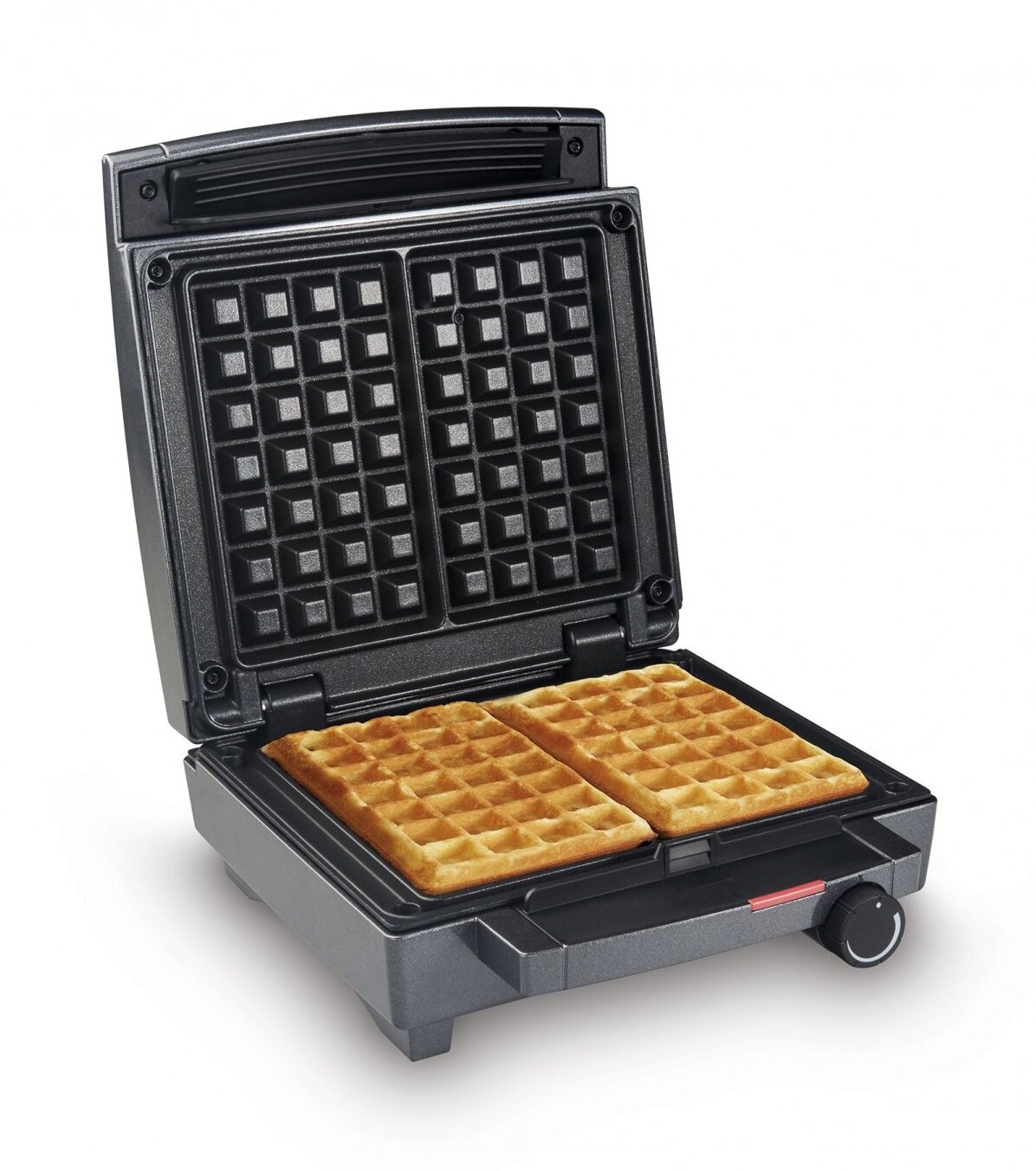 Urządzenie o mocy 1400 W pozwoli na jednoczesne przygotowanie 2 prostokątnych gofrów. Dzięki opcji bezstopniowej regulacji temperatury można dopasować stopień wysmażenia do indywidualnych preferencji.