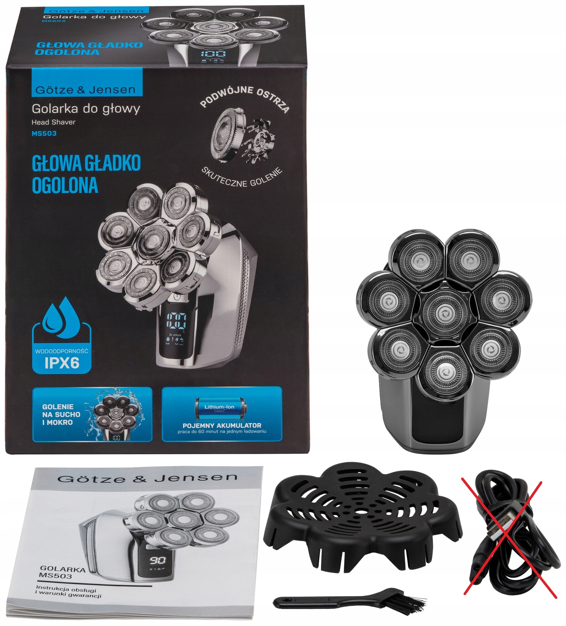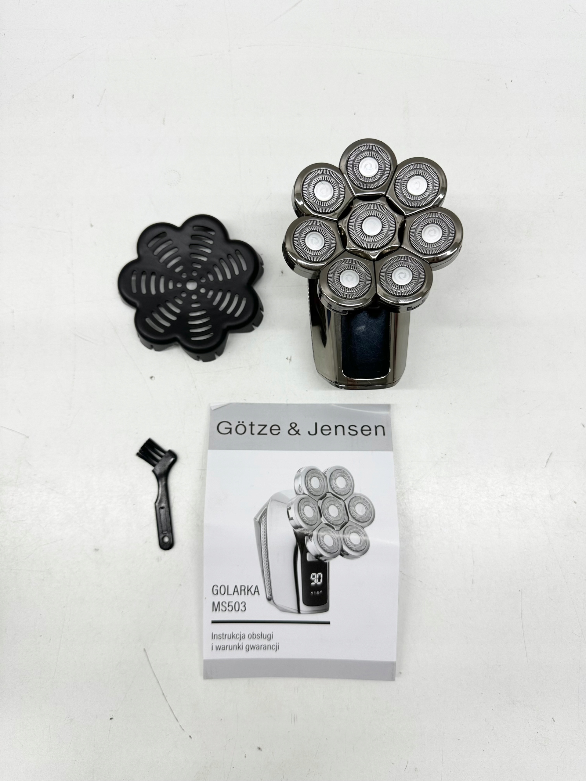 Golarka GÖTZE & JENSEN MS503, osłona ostrzy, szczoteczka do czyszczenia, instrukcja obsługi.