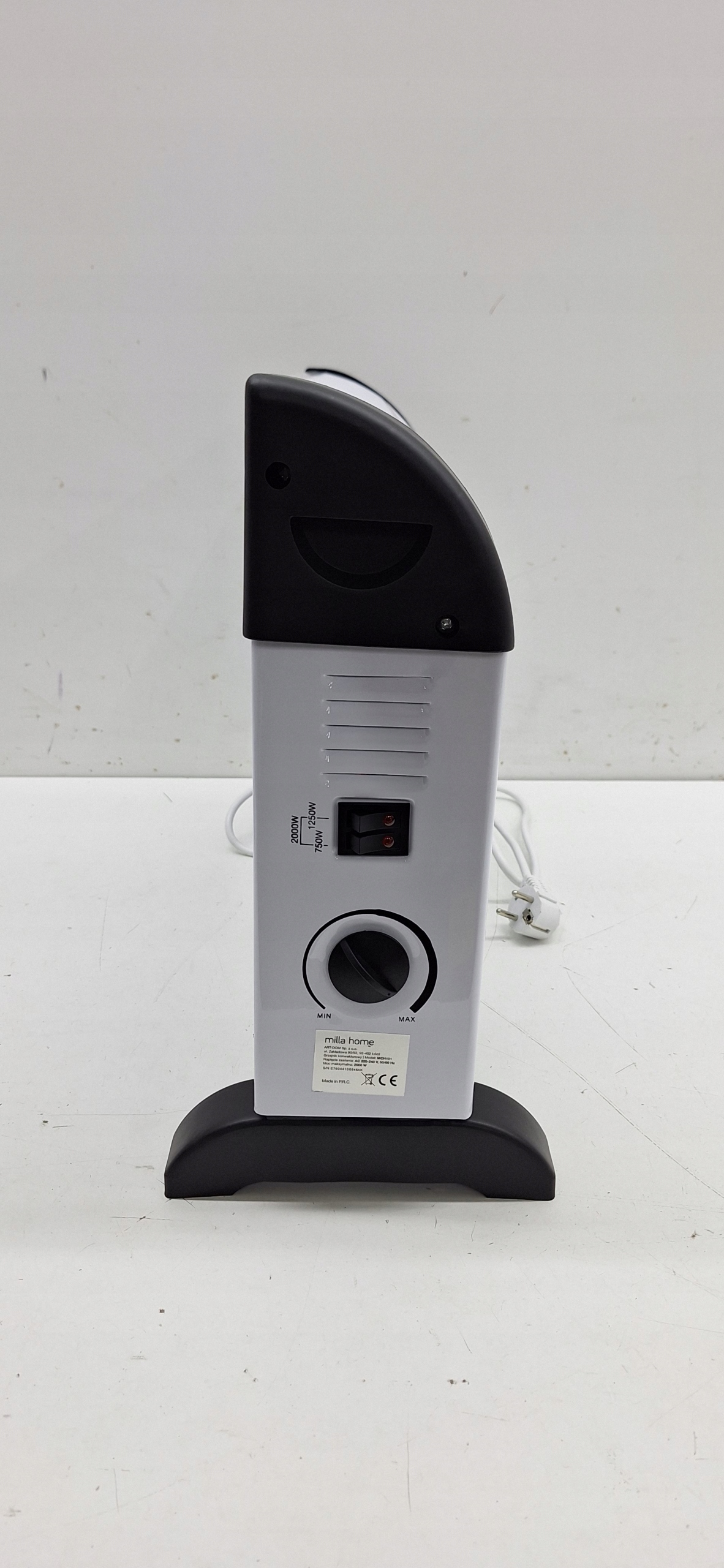 W grzejniku MILLA HOME MCH101 umieszczono 2 niezależne grzałki o mocy 750 W i 1250 W, których możesz używać pojedynczo lub obu jednocześnie, w zależności od oczekiwanej siły grzania urządzenia. Wbudowany termostat pozwoli utrzymać stałą temperaturę w pomieszczeniu, automatycznie regulując pracę grzałek.