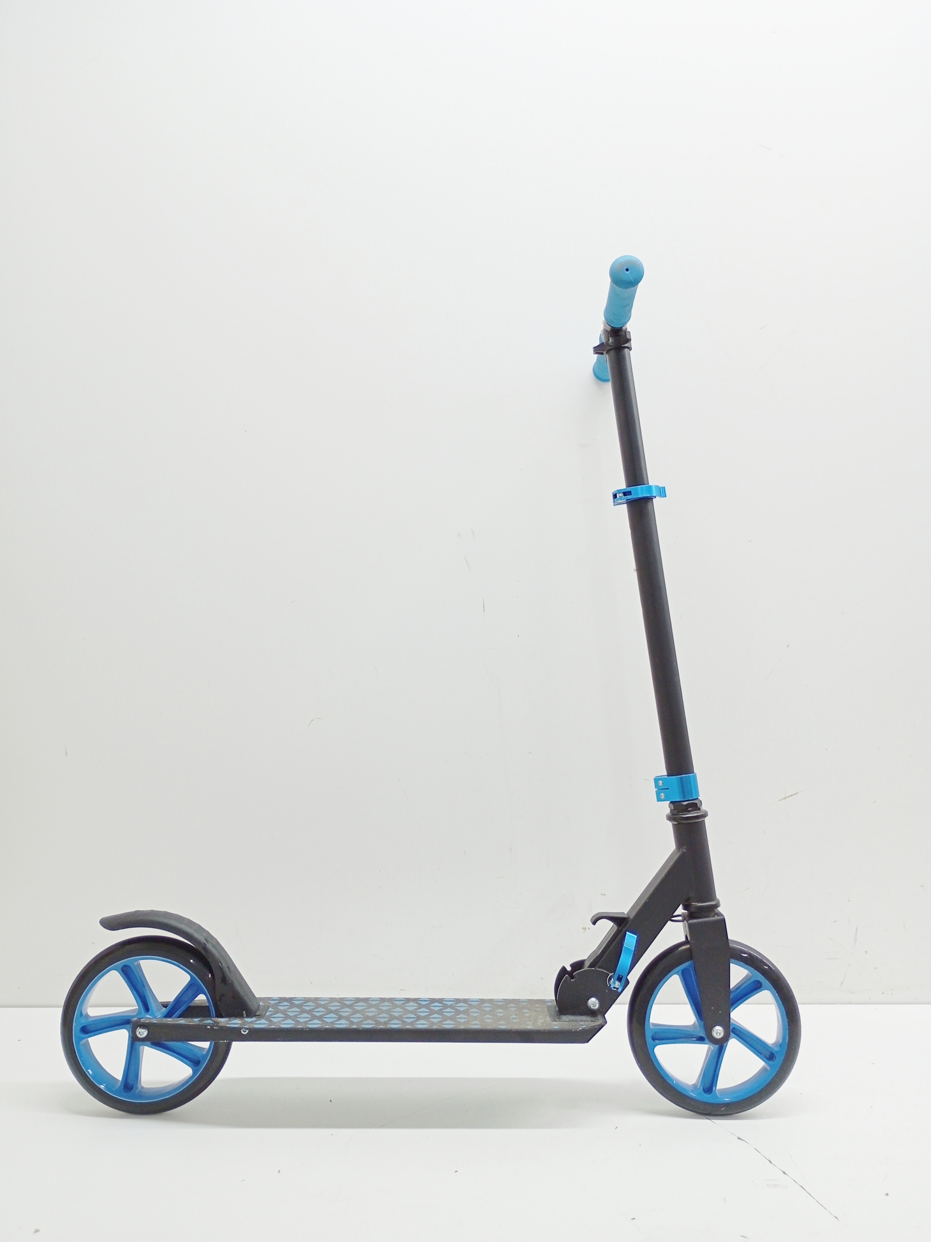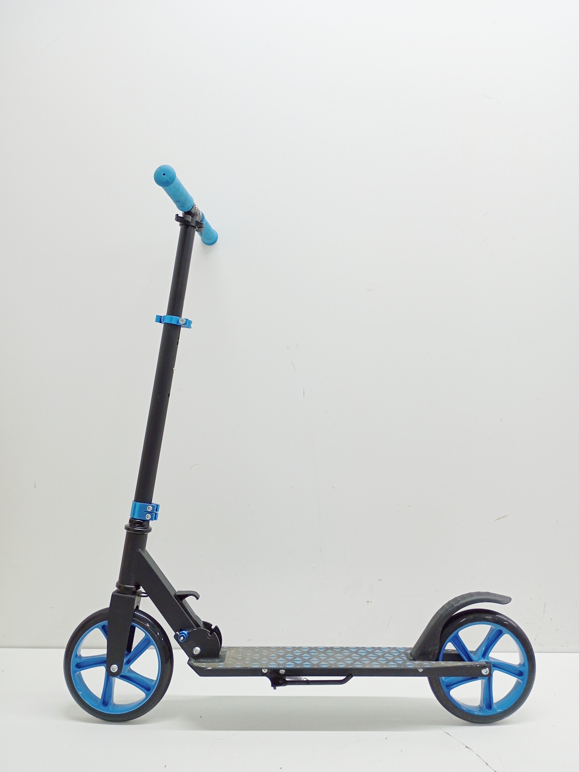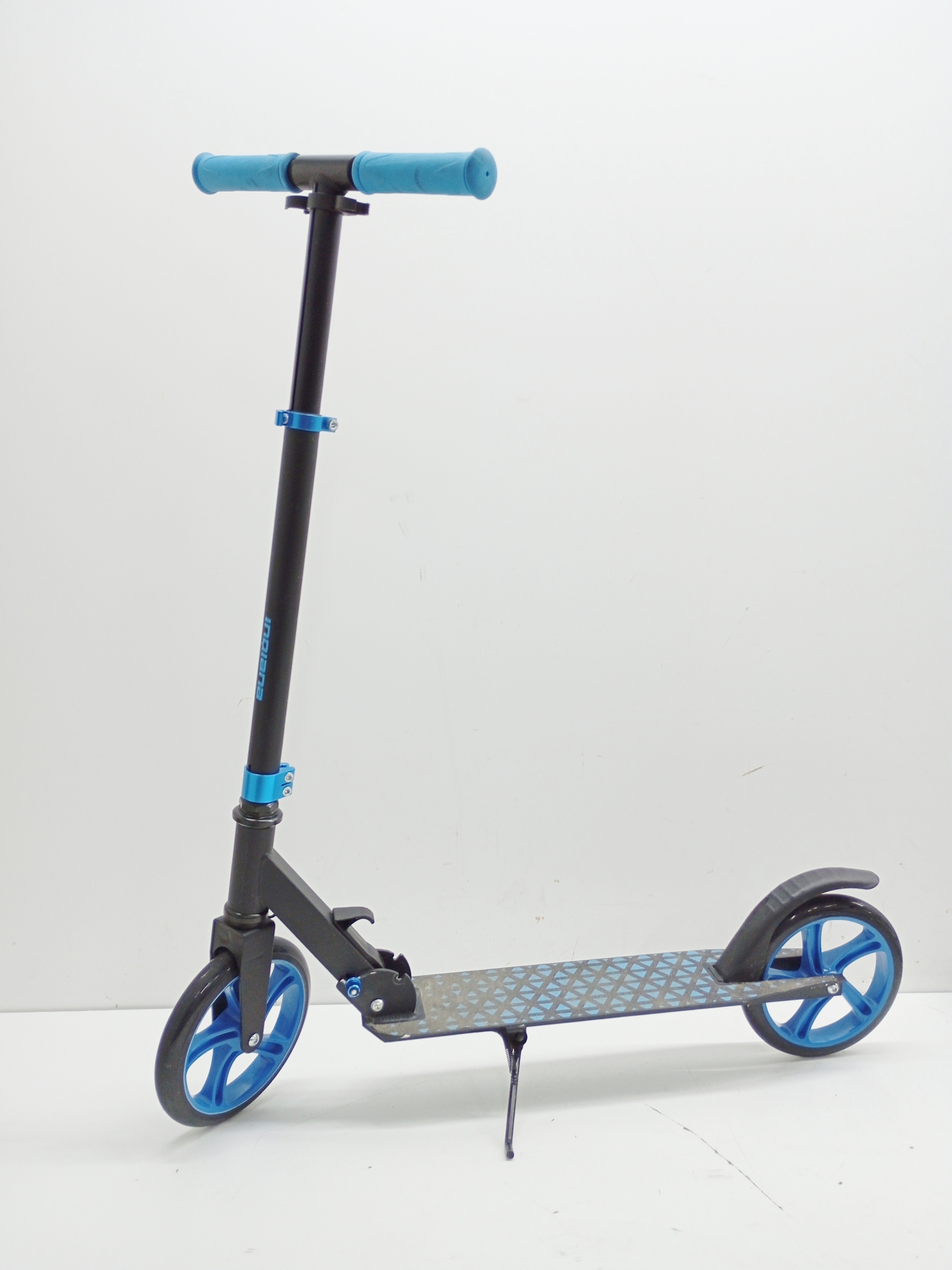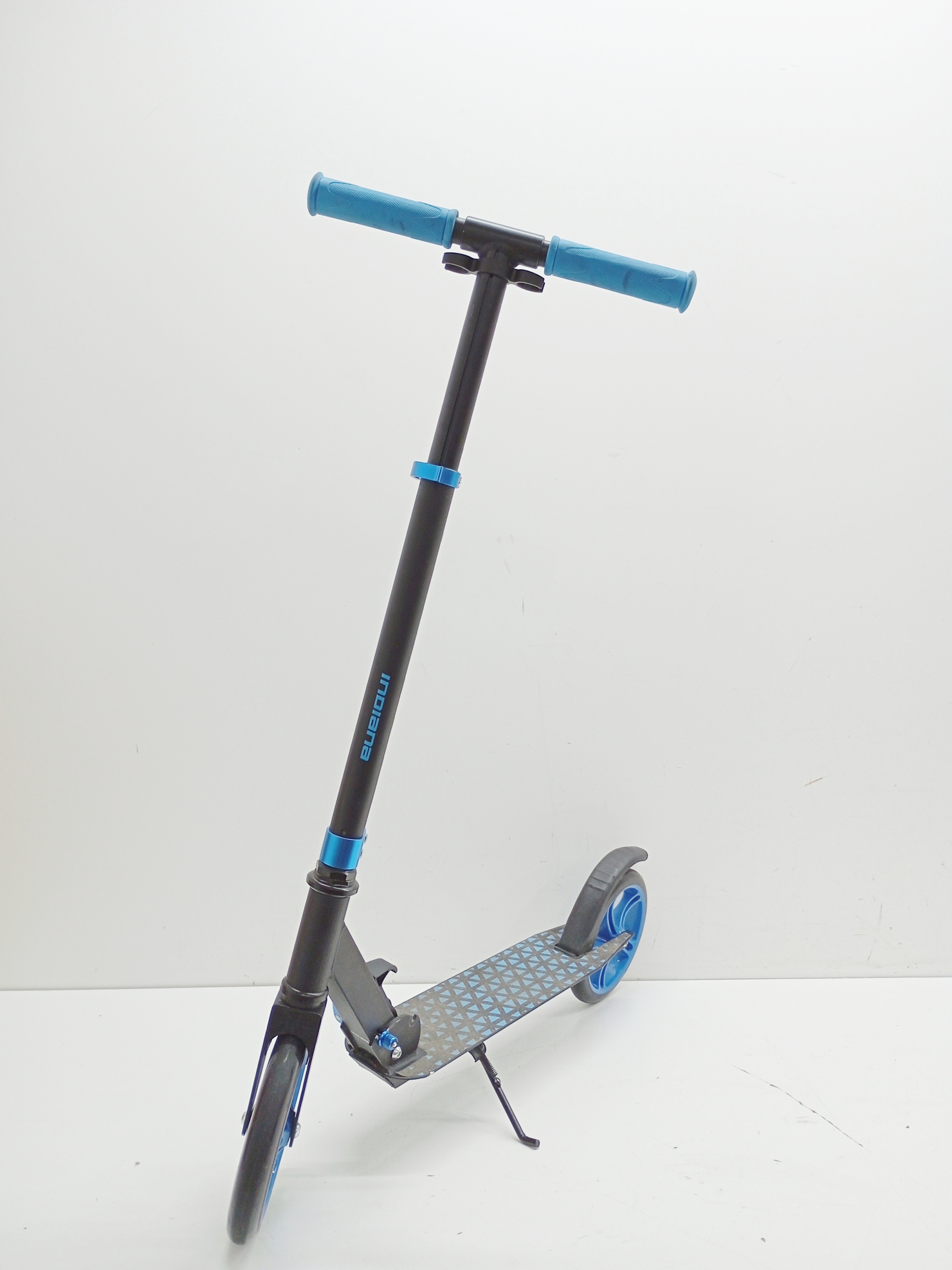Nowoczesny design hulajnogi INDIANA R6 bazuje na ciekawym połączeniu kolorystycznym - czerń z energetyzującymi, niebieskimi elementami. Hulajnoga ma składaną konstrukcję, dzięki temu łatwo zabrać ją ze sobą wszędzie.