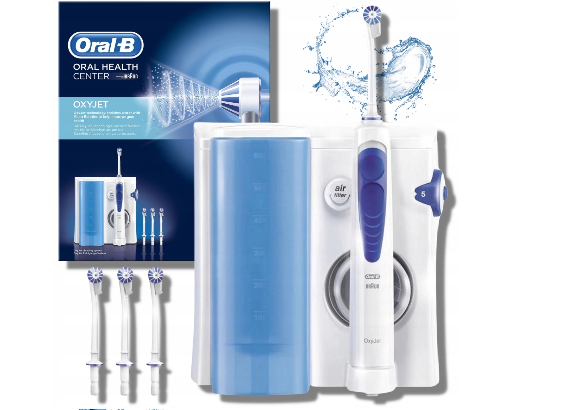 Wyposażony w technologię OxyJet. Wzbogaca ona wodę mikrobąbelkami powietrza, gwarantując głębokie czyszczenie poniżej linii dziąseł. Poprawia tym samym stan zdrowia zębów, dziąseł oraz całej jamy ustnej.