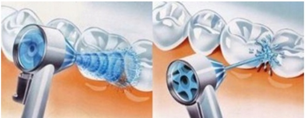Strumień wirujący zaprojektowany został tak, aby z łatwością wnikać poniżej linii dziąseł i je masować oraz wpływać na ich ukrwienie.