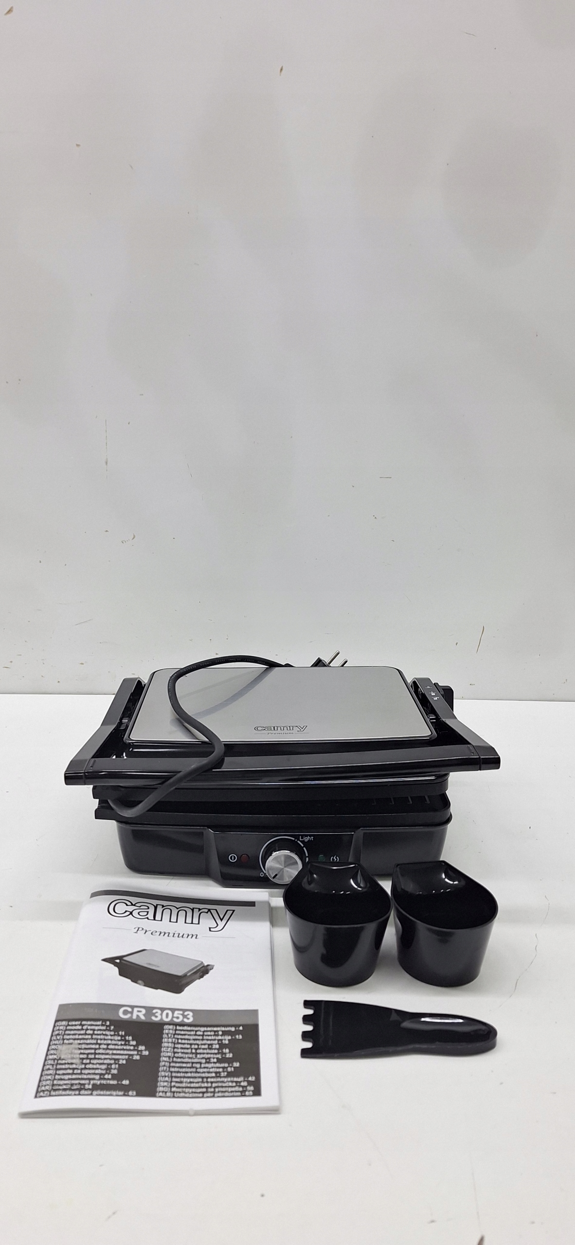 Grill elektryczny CAMRY CR 3053 o mocy maksymalnej 2500W daje możliwość przygotowania szerokiej gamy ciepłych posiłków – od opiekanych burgerów, przez steki, karkówkę, kurczaka i inne mięsa, po grillowane warzywa i sery.