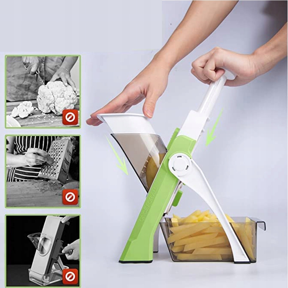 Ta krajarka do warzyw z 4 rodzajami cięcia:paski reguluje grubość ziemniaków od 1 do 8 mm.