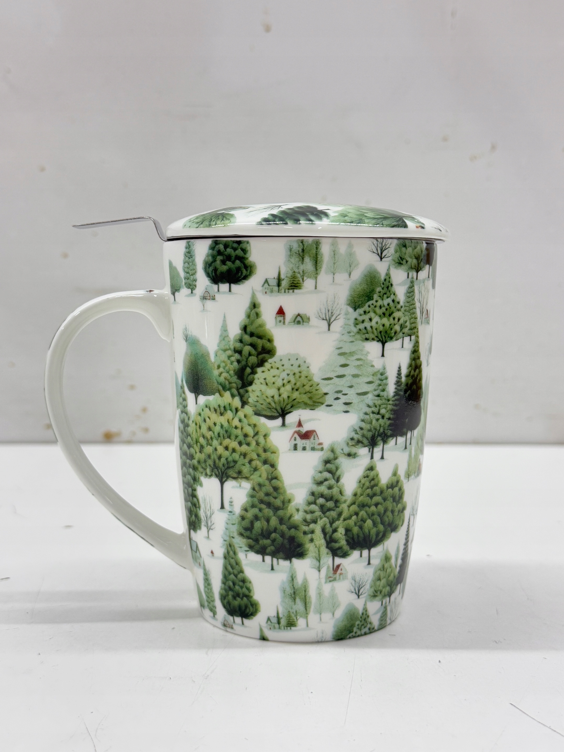Uważany za najlepszą jakość porcelany, dzięki swojej wytrzymałości, ale jednocześnie delikatności, ten kubek wykonany z porcelany Fine Bone China ma alpejski design. Jest ozdobiony uroczą scenerią, która przywołuje spokój małego miasteczka w Alpach, otoczony majestatycznymi drzewami typowymi dla regionu, takimi jak świerki i sosny. Szczegółowo zilustrowane drzewa stoją na nieskazitelnym białym tle, które wzmacnia spokój i czystość środowiska alpejskiego, tworząc wizualny zespół, który zachęca do spokoju i kontemplacji natury w jej najczystszym stanie. Idealnie pasuje do okrągłej puszki Alpine Cottage i Travel Tea Bamboo Alpine Cottage. Zaparzacz i pokrywka w zestawie zapewniają bardziej aromatyczne napary. Filtr ze stali nierdzewnej Podgrzać wodę w czajniku, włożyć herbatę (4-6g) do filtra i zalać liśćmi gorącą wodą. Po zakończeniu infuzji wyjąć filtr.