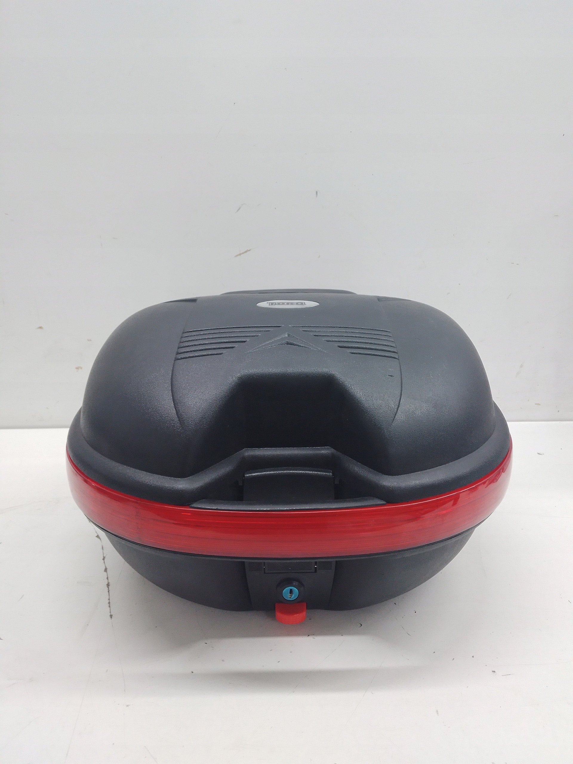 BOX01 marki Torq to uniwersalny kufer do skutera z płytą montażową o pojemności 26 litrów. Wymiary kufra 43 x 38 x 28 cm, mieści się kask integralny.