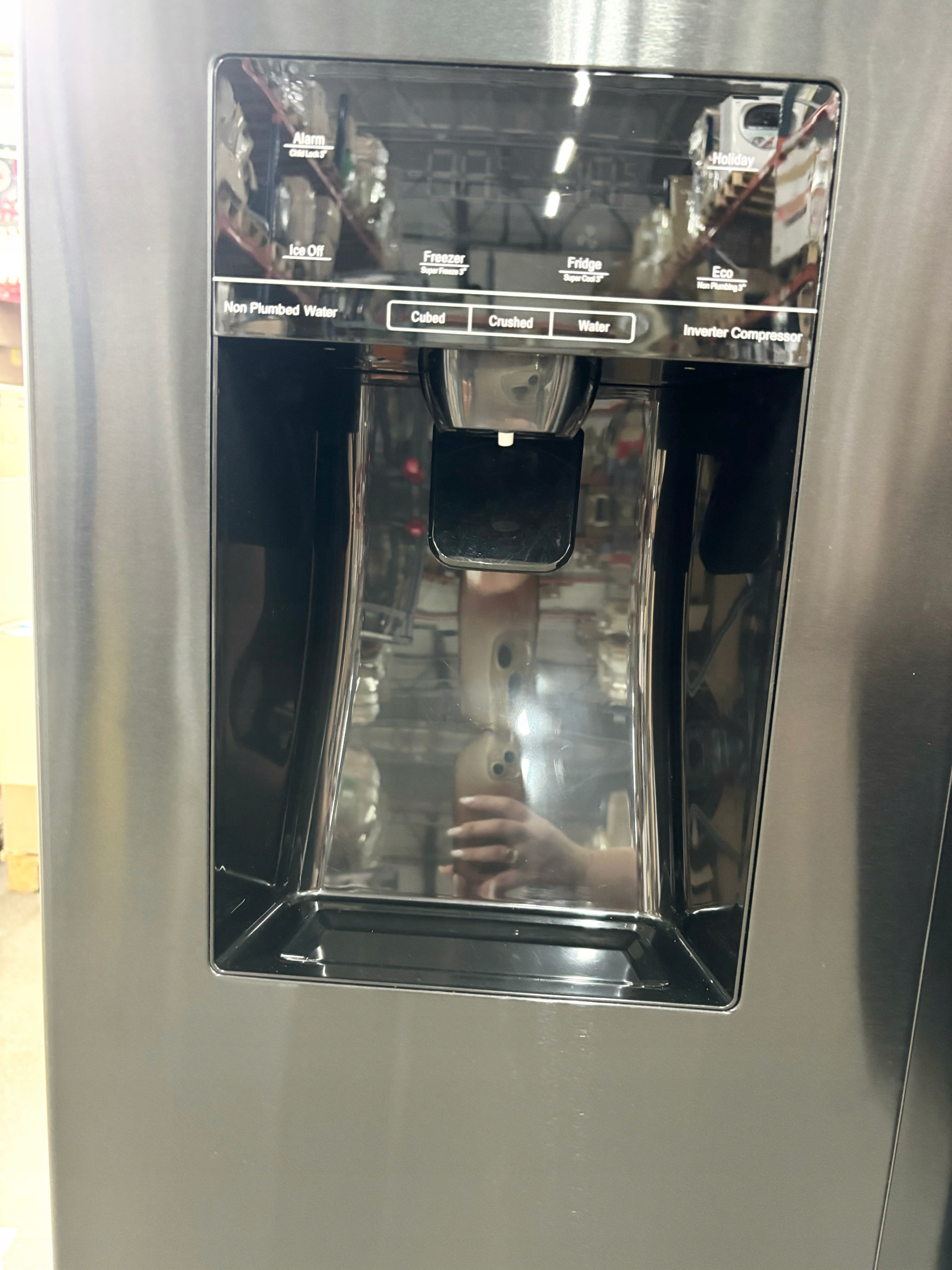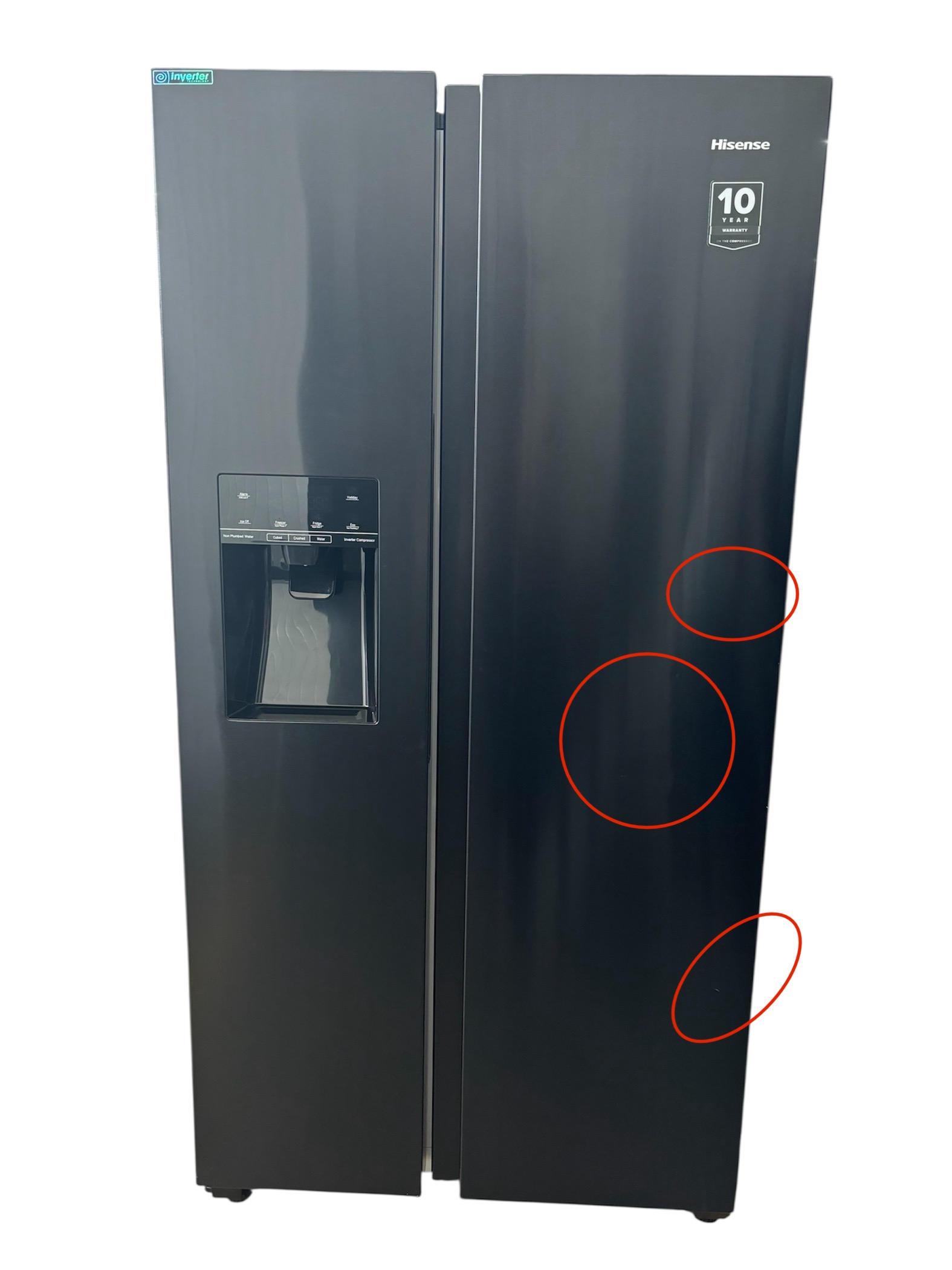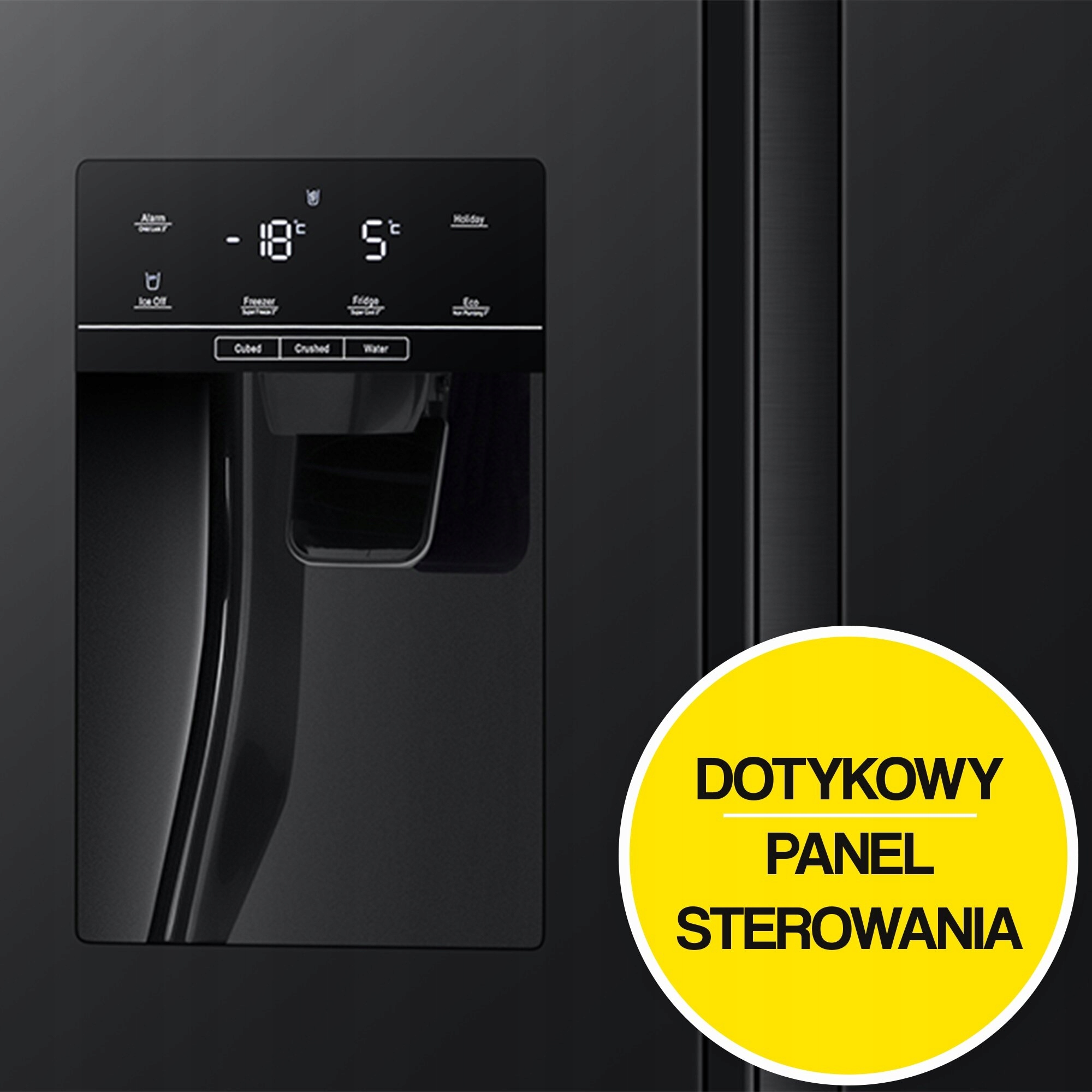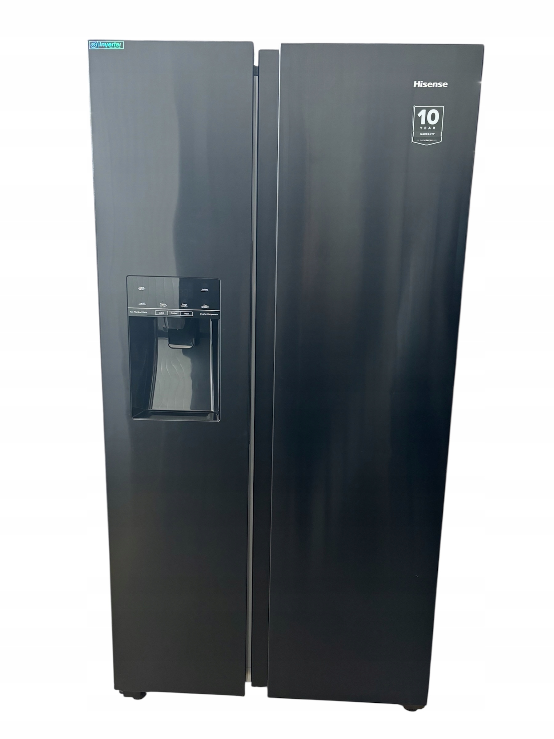 Uzyskaj idealnie schłodzoną wodę oraz świeżo kruszony lód lub w formie kostek z lodówki HISENSE RS694N4TFE za naciśnięciem jednego przycisku. A to wszystko bez podłączenia do instalacji wodnej.