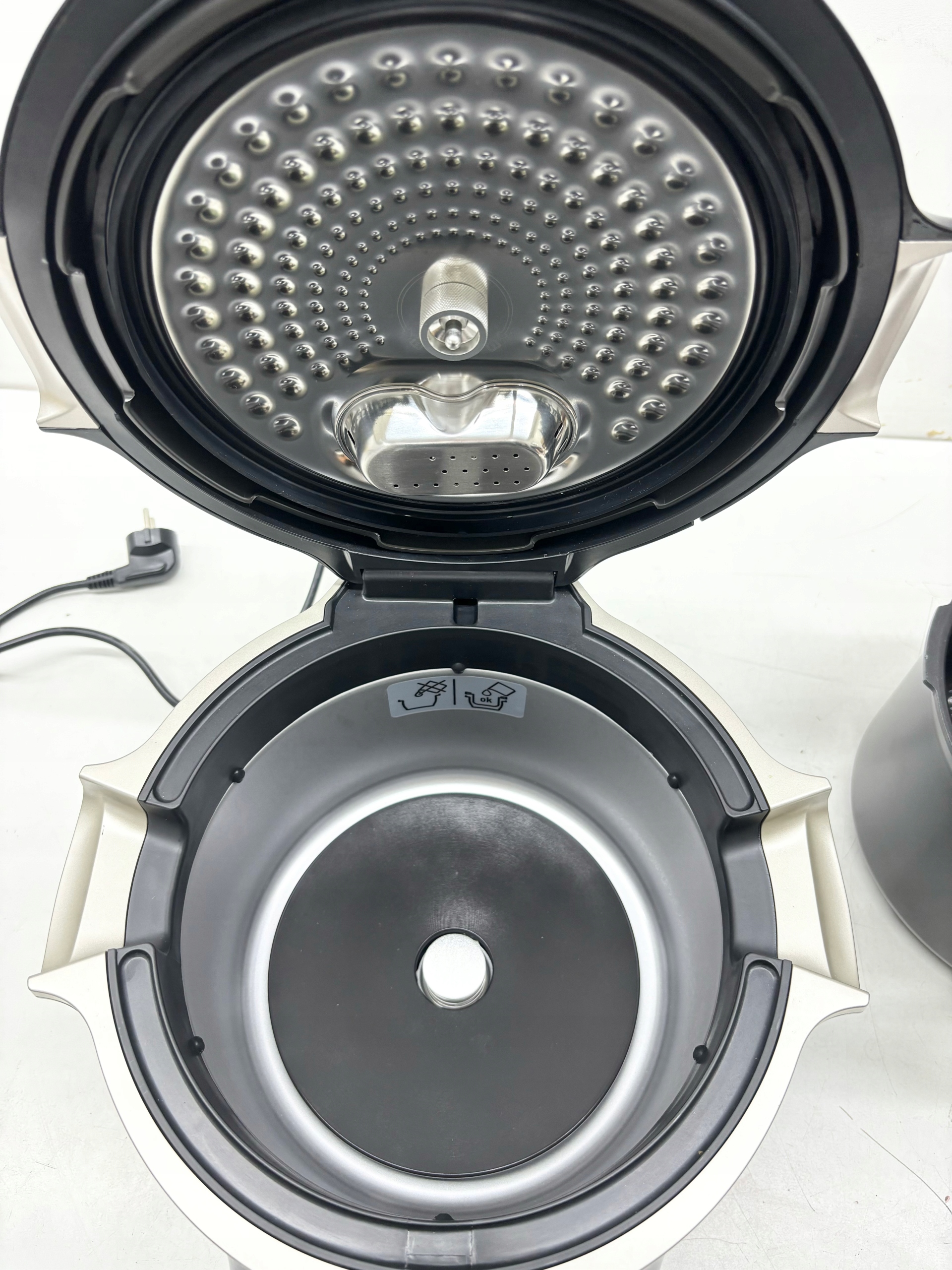 Wyjmowalna misa pokryta została powłoką nieprzywierającą ułatwiającą czyszczenie naczynia. Pokrywę z łatwością umyjesz pod bieżącą wodą.