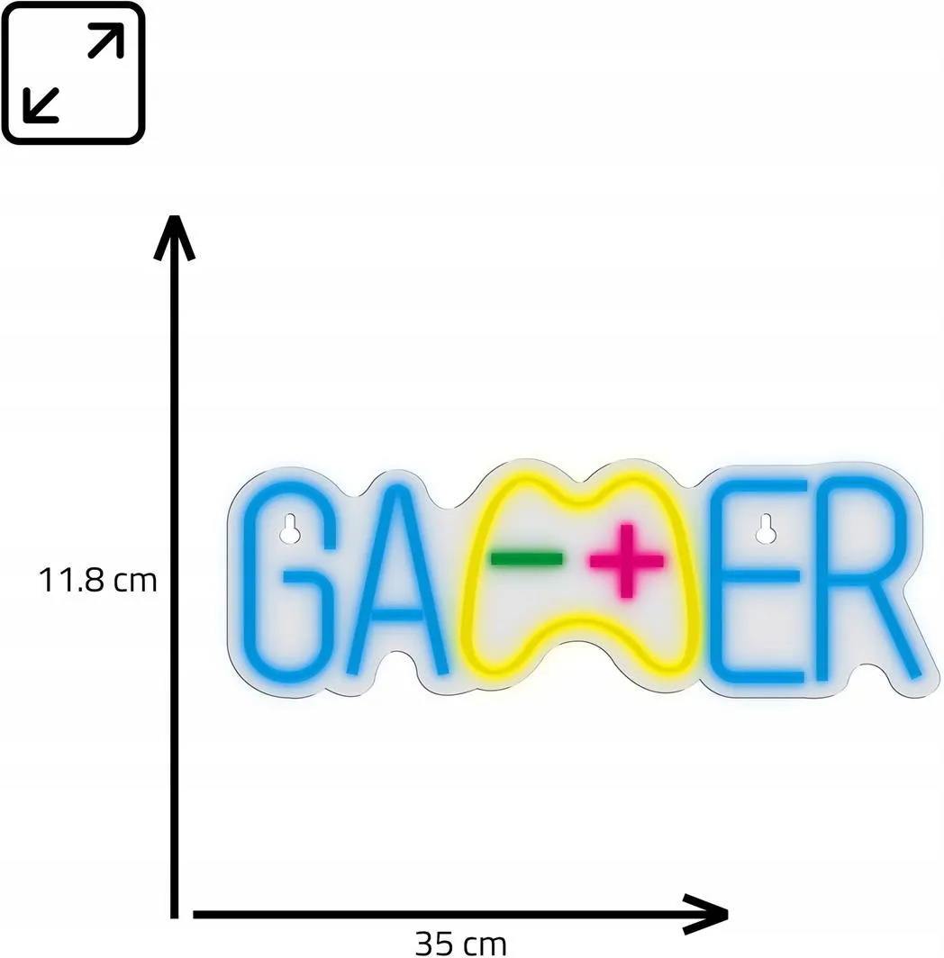 Lampka neon LED w kształcie napisu "GAMER" to idealny dodatek do pokoju każdego entuzjasty gier. Dzięki wymiarom 35x11,8 cm, lampka jest wystarczająco duża, aby przyciągnąć uwagę i dodać charakteru każdemu gamingowemu setupowi. Intensywne, kolorowe światło neonowe tworzy dynamiczną atmosferę, która doskonale komponuje się z nowoczesnym wystrojem pokoju gracza.