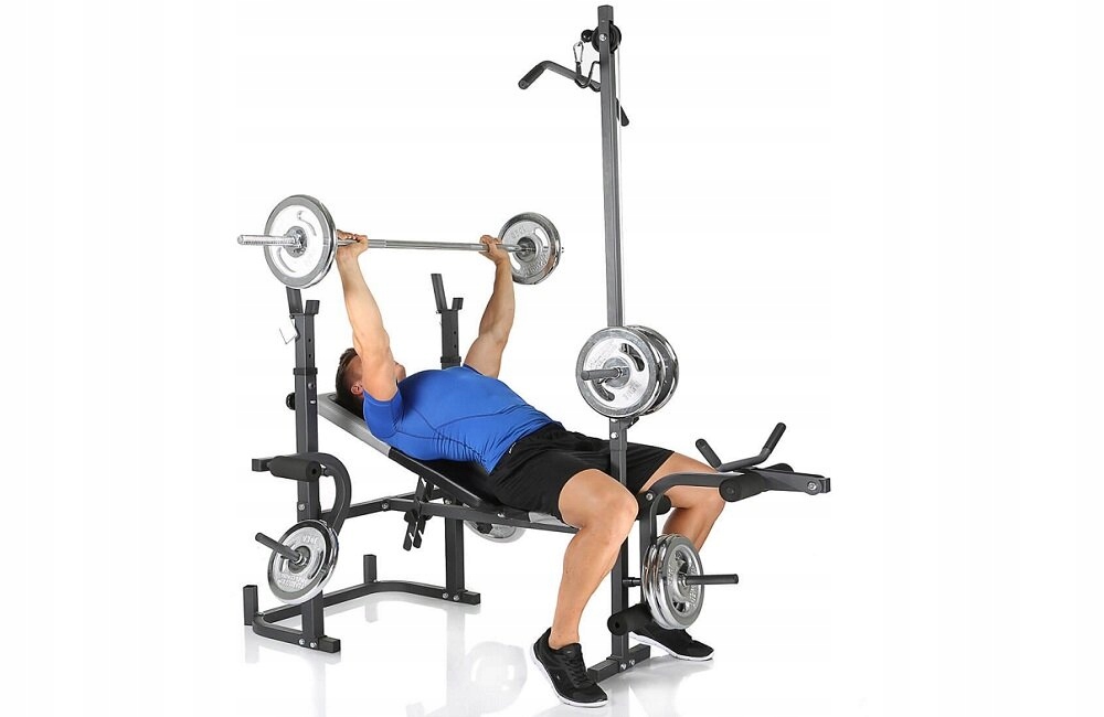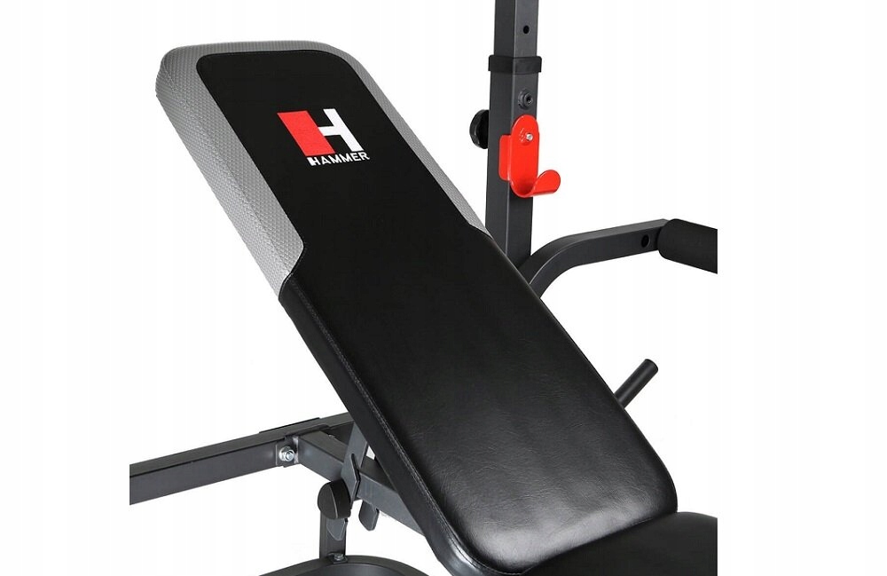 Ławka treningowa HAMMER Bermuda XT PRO pasuje do każdego pomieszczenia i jest idealna do intensywnego treningu siłowego w domu. Ćwiczenia motylków, wyciskanie lub ćwiczenia nóg, na tej ławce jest wszystko możliwe, jak również intensywne i kontrolowane ćwiczenie bicepsów na modlitewniku. Dodatkowy moduł wyciągu do ćwiczeń na ciągnięcie i wiosłowanie. Ławka zyskuje również w kwestii komfortu. Wymiary ławki 230 × 135 × 134 cm, uwaga - zestaw nie zawiera gryfu z obciążeniami.
