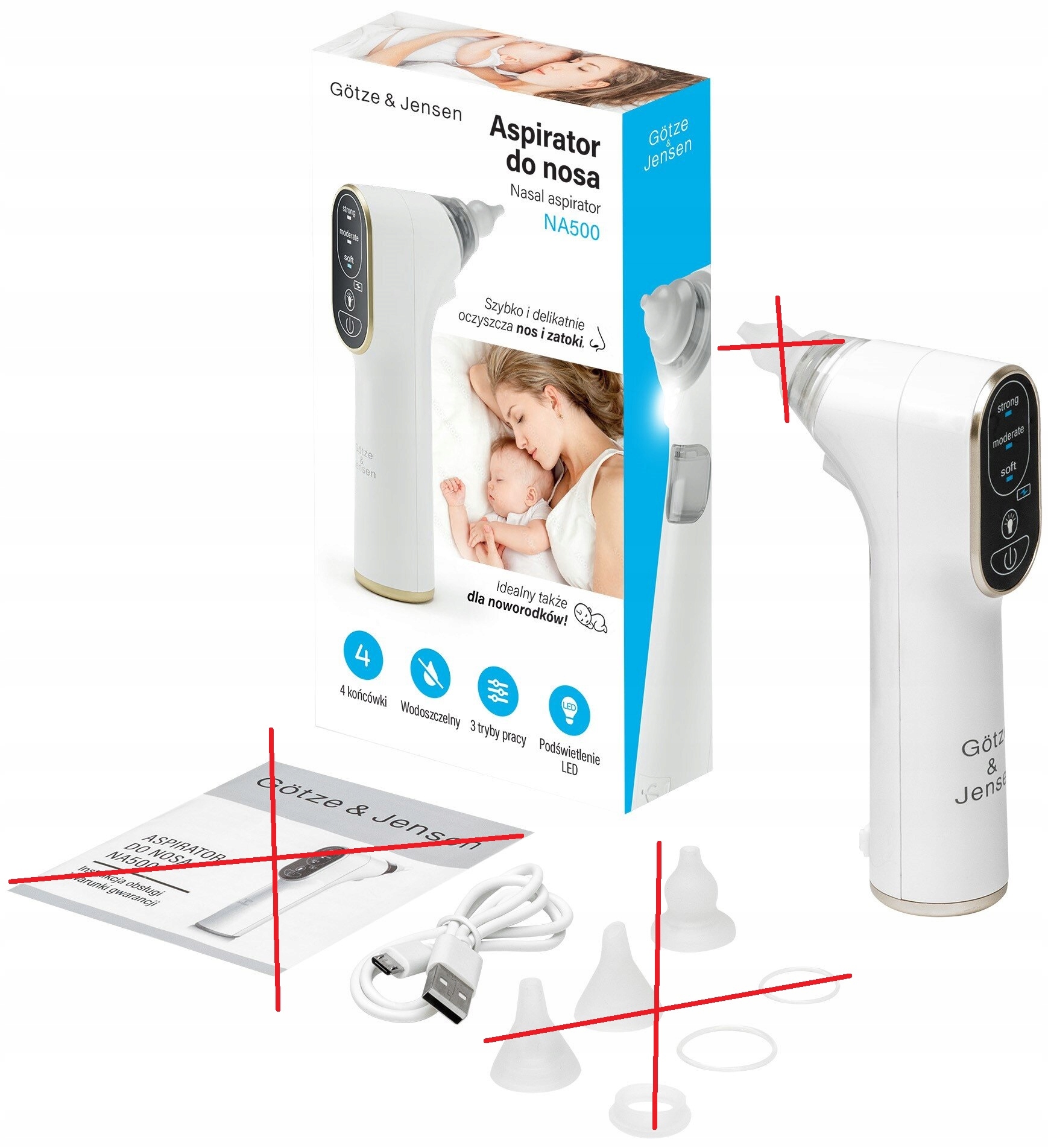 Aspirator do nosa GÖTZE & JENSEN NA500, przewód USB.