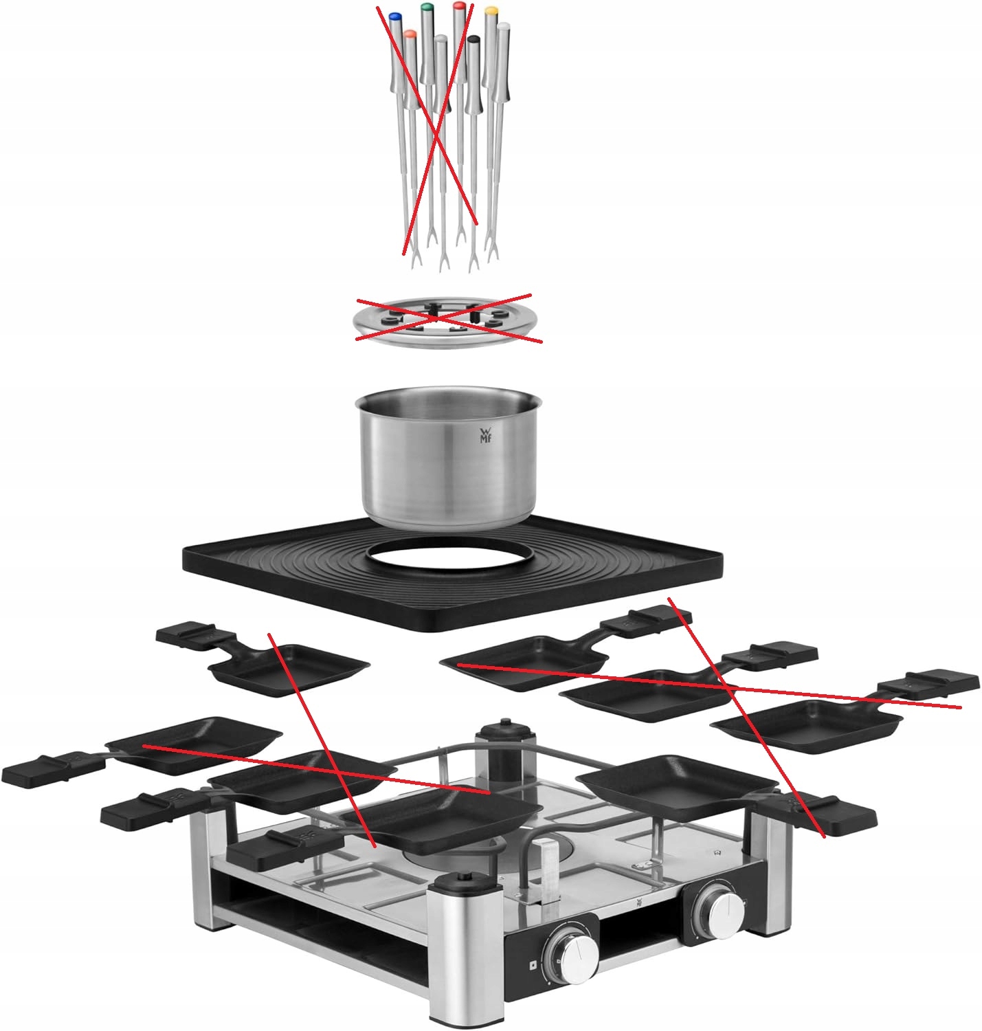 Są dni, kiedy jednym danie nie wystarcza i zamiast wybierać, chcemy mieć wszystko. Dla takich właśnie dni stworzono WMF Gourmet Station Grill z Raclettem i Urządzeniem do Fondue. To 3 w 1 urządzenie, które pozwala na przygotowanie idealnego mięsa na grillu, smakowitego fondue oraz pysznego raclette. Urządzenie jest wykonane ze stali nierdzewnej Cromargan, co gwarantuje trwałość i elegancki wygląd.