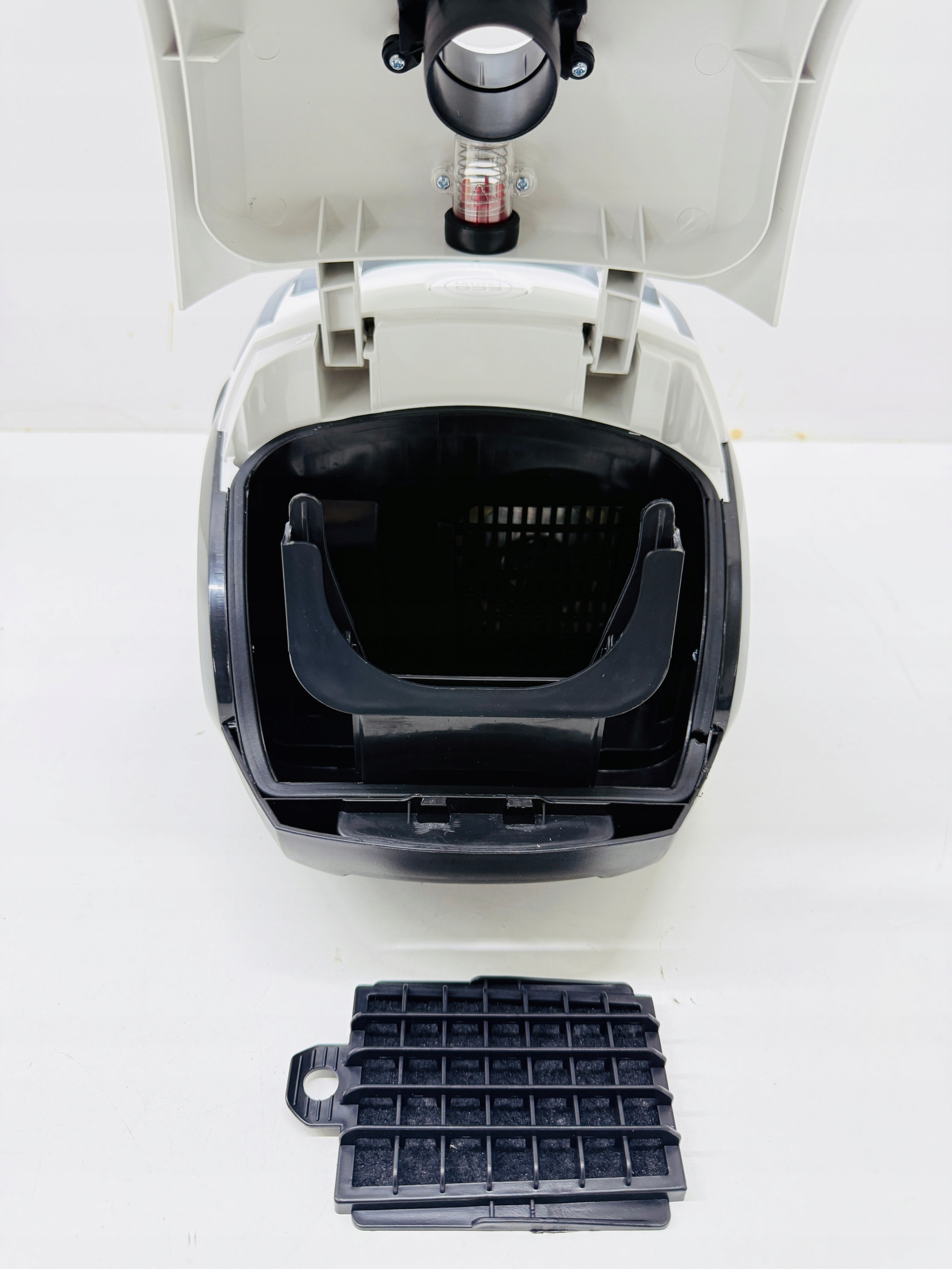Wbudowany wskaźnik zapełnienia worka przypomina o jego wymianie we właściwym momencie. To rozwiązanie, które pozwala utrzymać wysoką skuteczność odkurzacza i uniknąć nagłego spadku mocy podczas pracy.