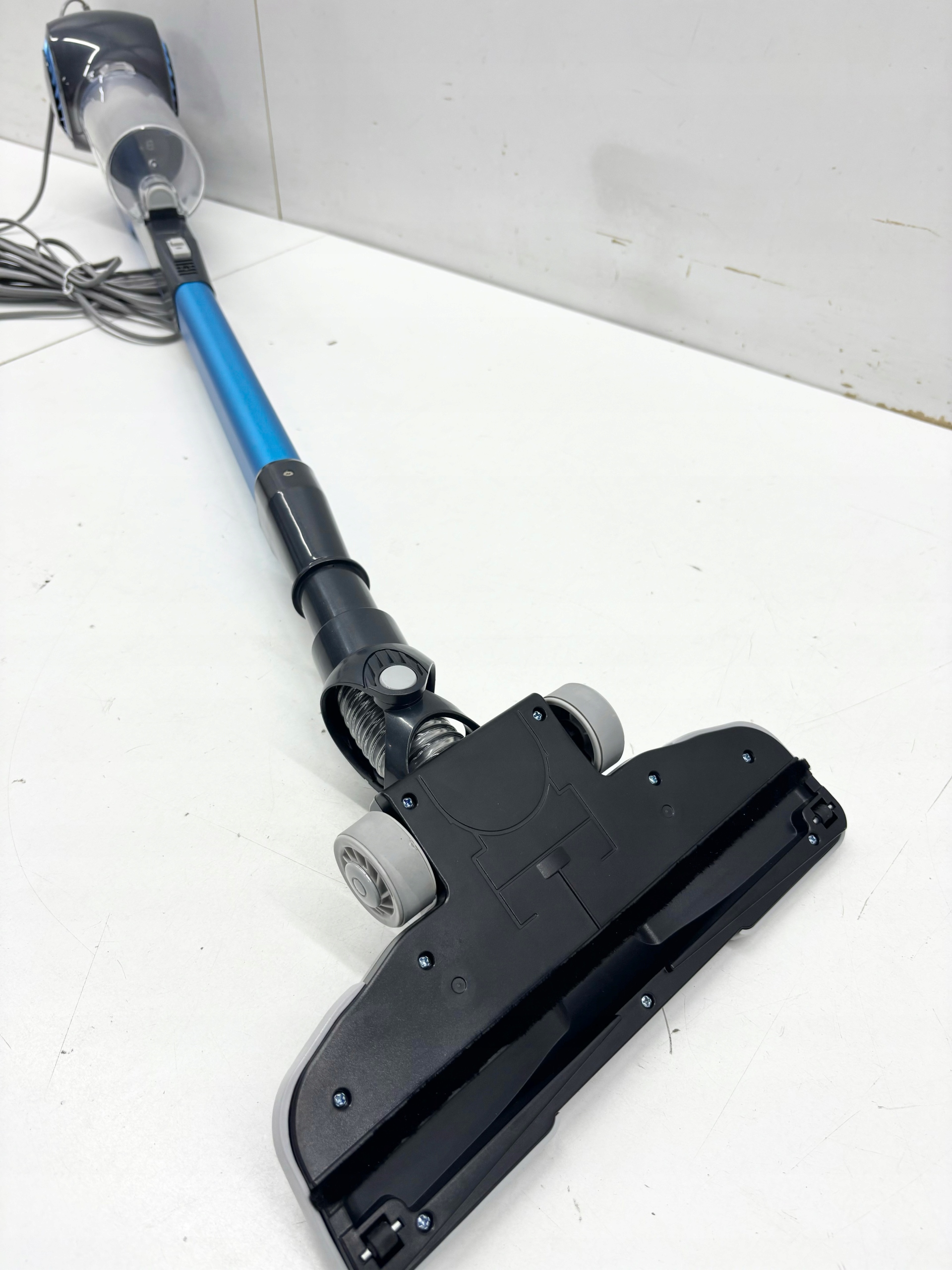 Urządzenie zasilane jest sieciowo. Posiada dość długi 6 metrowy kabel, zaś jego całkowity zasięg wynosi 8 metrów. Dzięki temu można łatwo sprzątać także większe pomieszczenia, bez ciągłego przełączania kabla do innych gniazdek. Z pewnością znacznie ułatwia to codzienne obowiązki sprawiając, że odkurzanie trwa znacznie krócej i jest o wiele efektywniejsze.