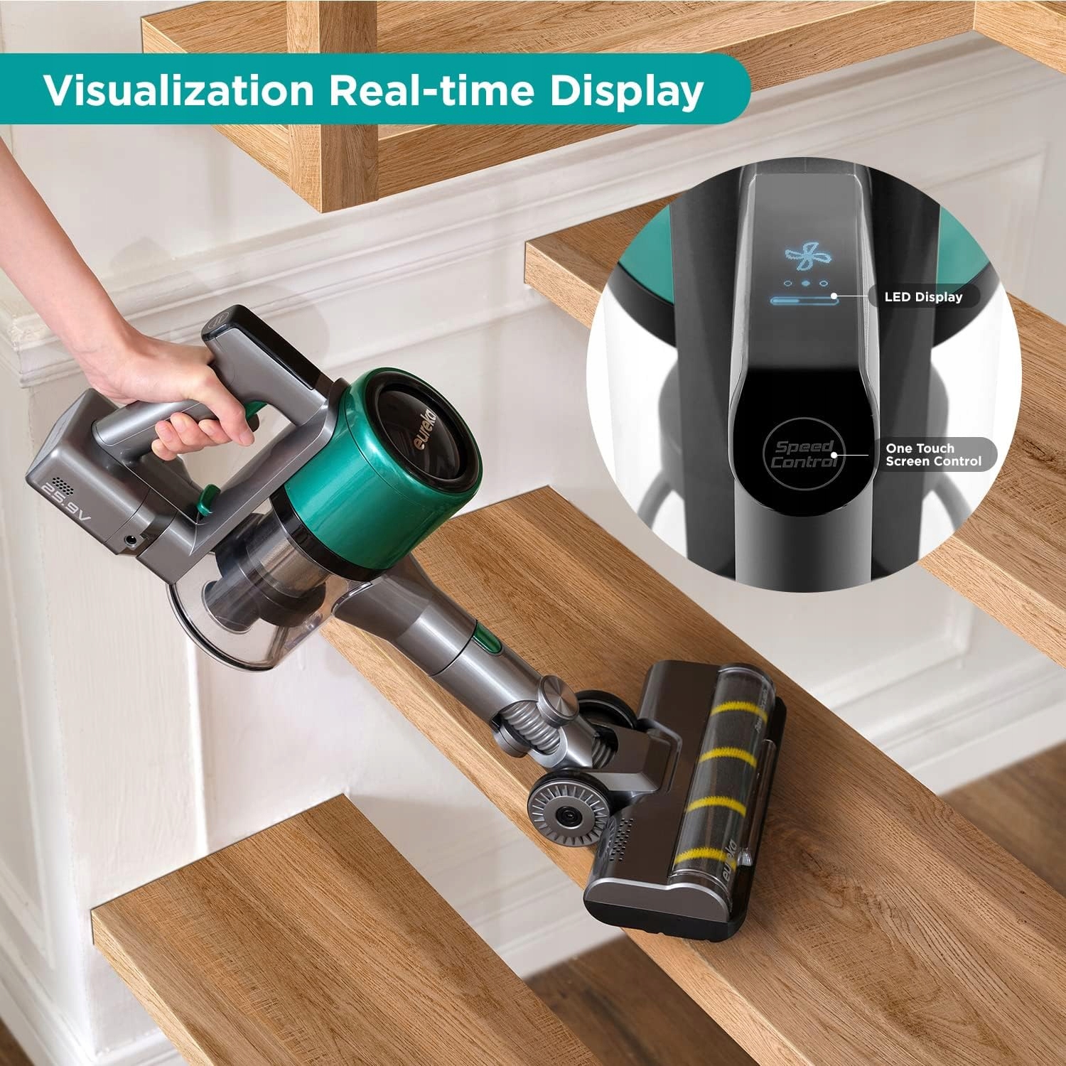 Wyświetlacz LED pokazuje 3 tryby czyszczenia, w tym Eco 50 minut, standardowe 25 minut i Boost 8 minut. Oświetlenie LED może oświetlić spód łóżka, sofy i mebli, aby pomóc w czyszczeniu każdego kąta domu.