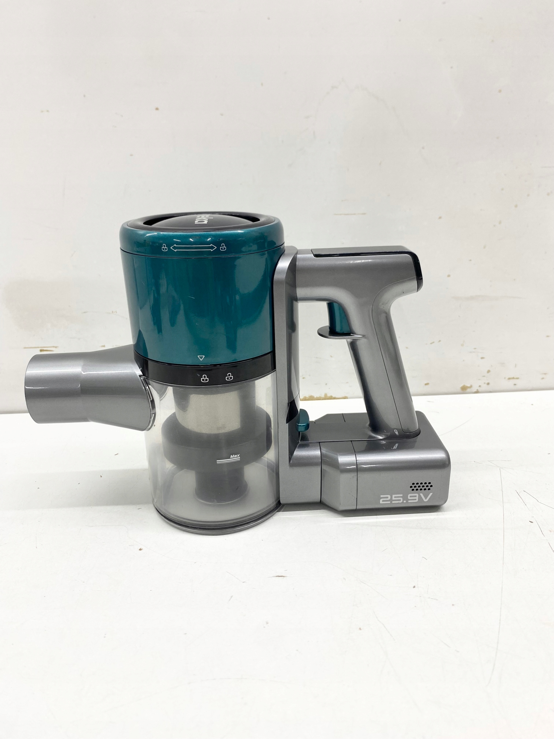 Odkurzacz AK9 jest zasilany zdejmowanym 7-ogniwowym akumulatorem litowym, który zapewnia do 50 minut pracy, aby dokładnie wyczyścić dom.