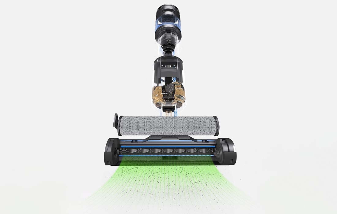 Dzięki specjalnej konstrukcji rolki szczotki korzystanie z H11 Max jest wygodne, a Ty nie musisz do tego używać niemal żadnej siły. Ponadto, urządzenie jest na tyle stabilne, że możesz je przechowywać w pozycji pionowej bez konieczności opierania o ścianę. Dodatkowo stacja ładowania posiada miejsce na akcesoria, dzięki czemu możesz mieć wszystko w jednym miejscu.