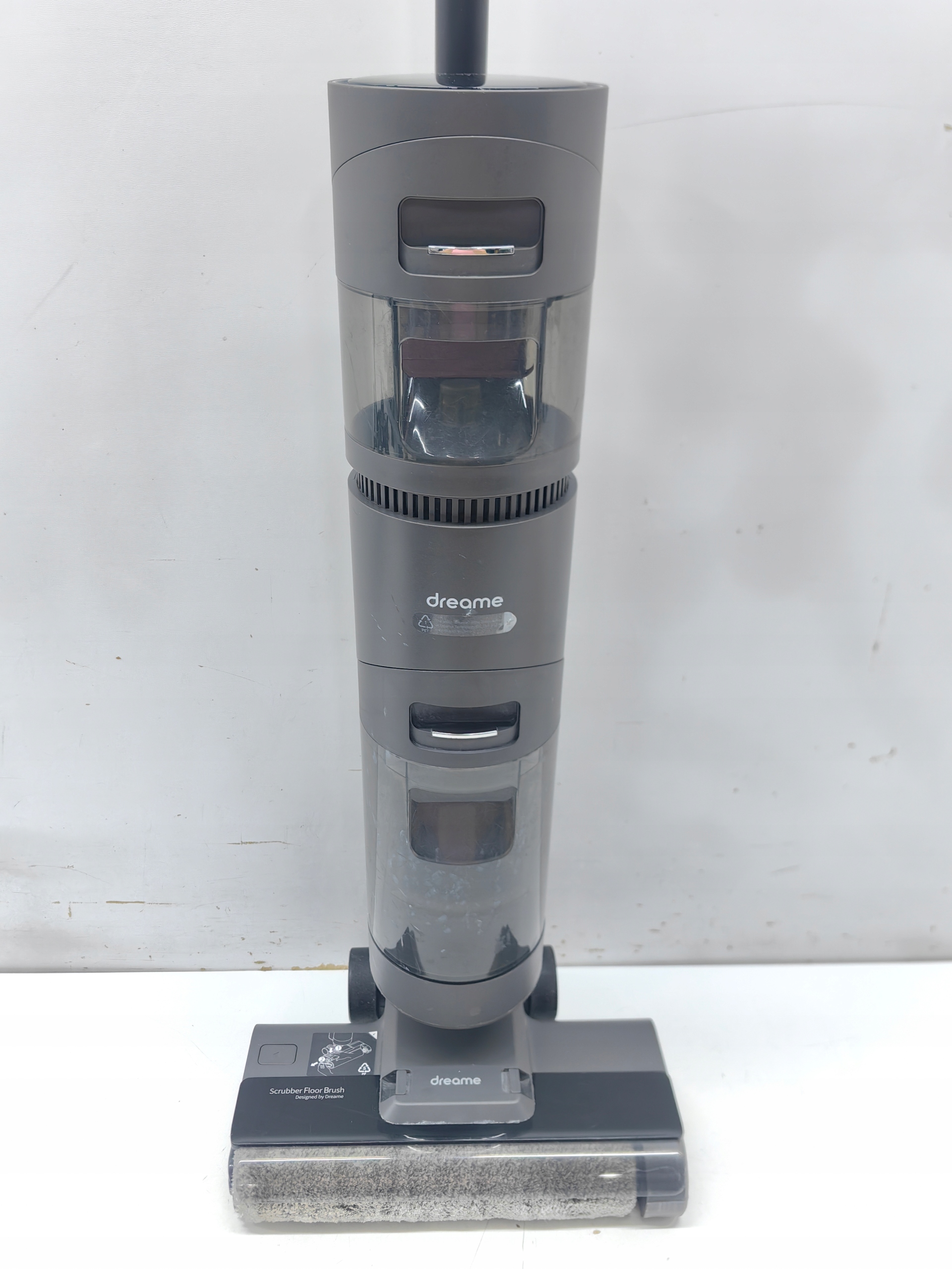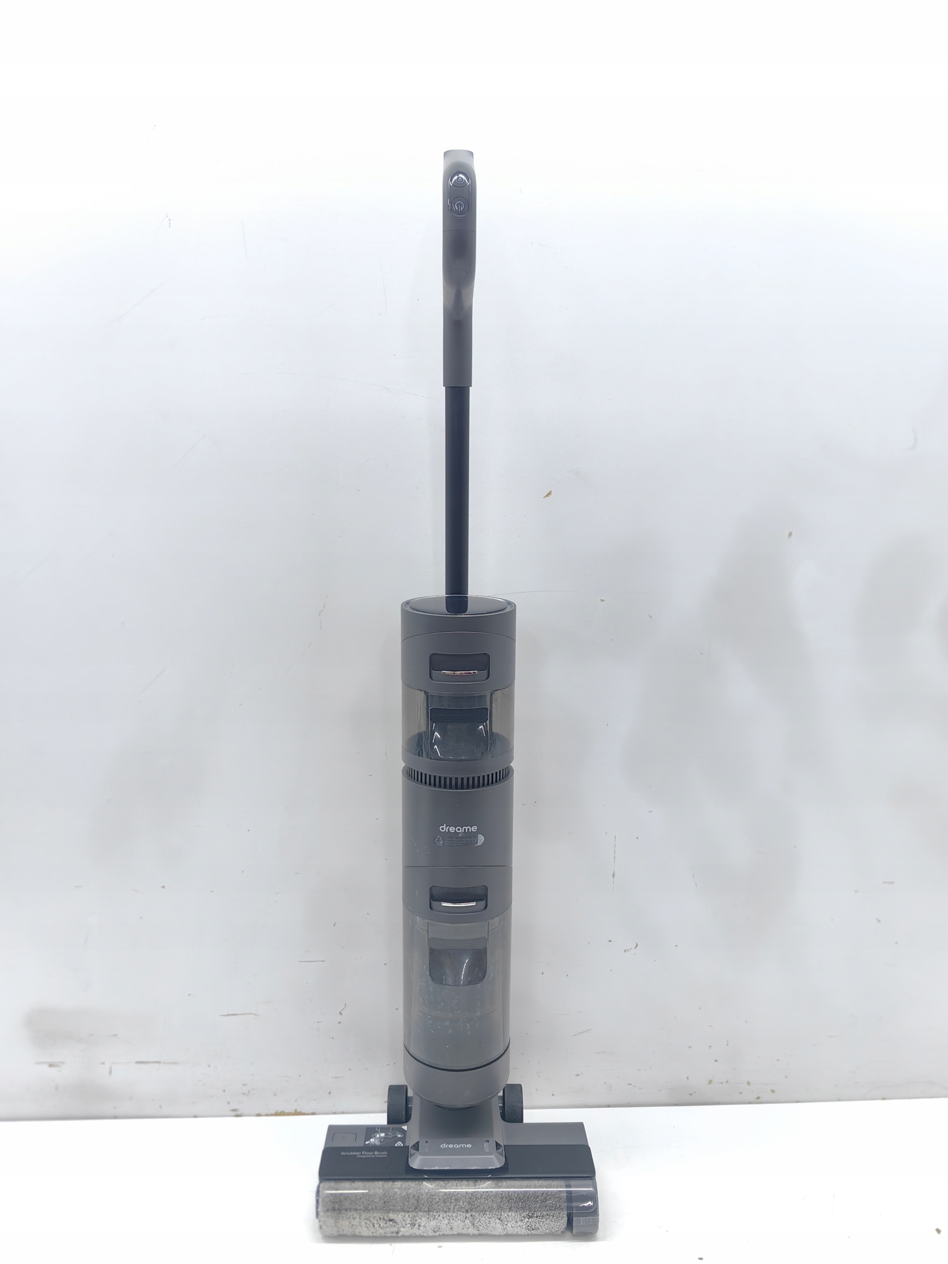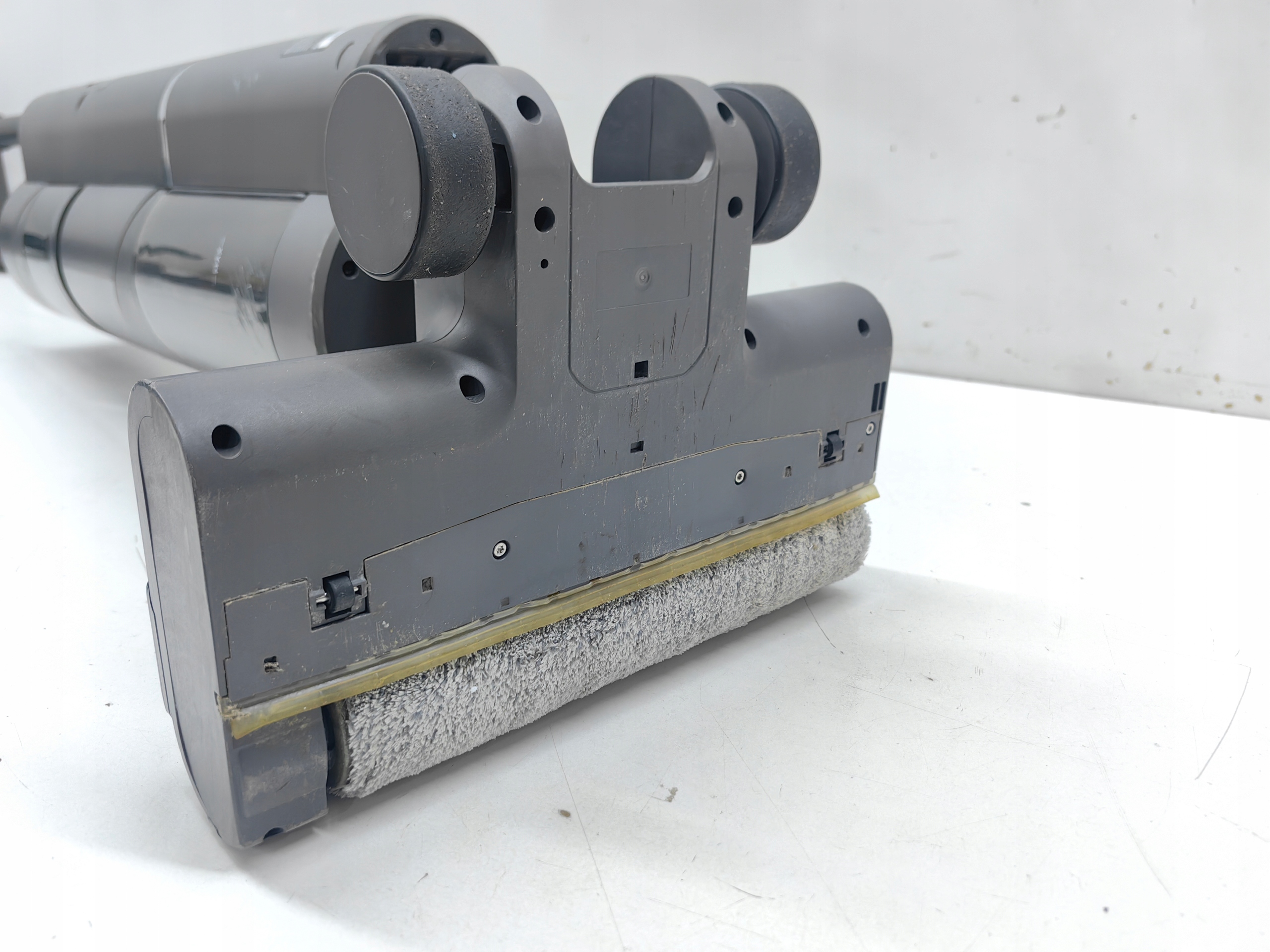 Nie trać czasu na czyszczenie odkurzacza. Szczotka H12 została wyposażona w specjalną skrobaczkę, która usuwa z niej brud podczas sprzątania. Dzięki temu masz pewność, że dopiero co zebrane zanieczyszczenia nie znajdą się z powrotem na podłodze. Co więcej, wystarczy umieścić odkurzacz bazie i nacisnąć przycisk, a wałek szczotki zostanie opłukany wodą i wyczyszczony.