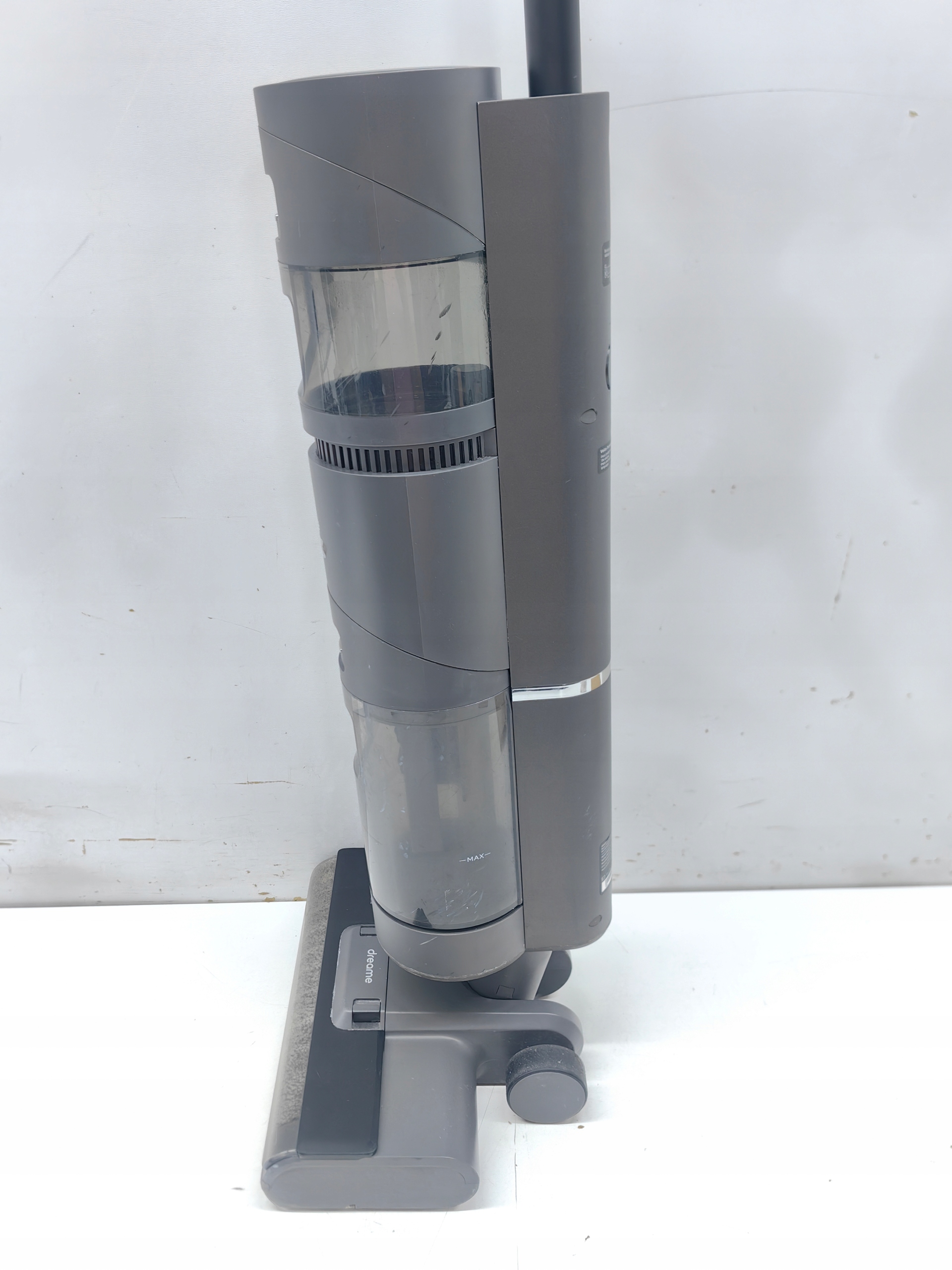 Dreame H12 został wyposażony w 2 zbiorniki na wodę - jeden na czystą, a drugi na brudną. Pierwszy z nich ma pojemność aż 900 ml. To oznacza, że nie musisz uzupełniać go podczas sprzątania - jedno napełnienie wystarczy na wyczyszczenie podłóg o dużej powierzchni. Pojemność drugiego zbiornika to 500 ml. Trafia do niego woda z zanieczyszczeniami, nie musisz więc się martwić, że rozlana kawa ponownie trafi na podłogę.