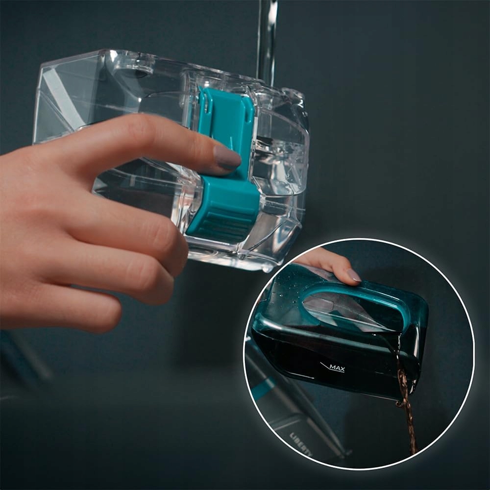 Oddzielne zbiorniki na wodę: 300 ml na czystą wodę i 350 ml na brudną, dla wygody i higieny.
