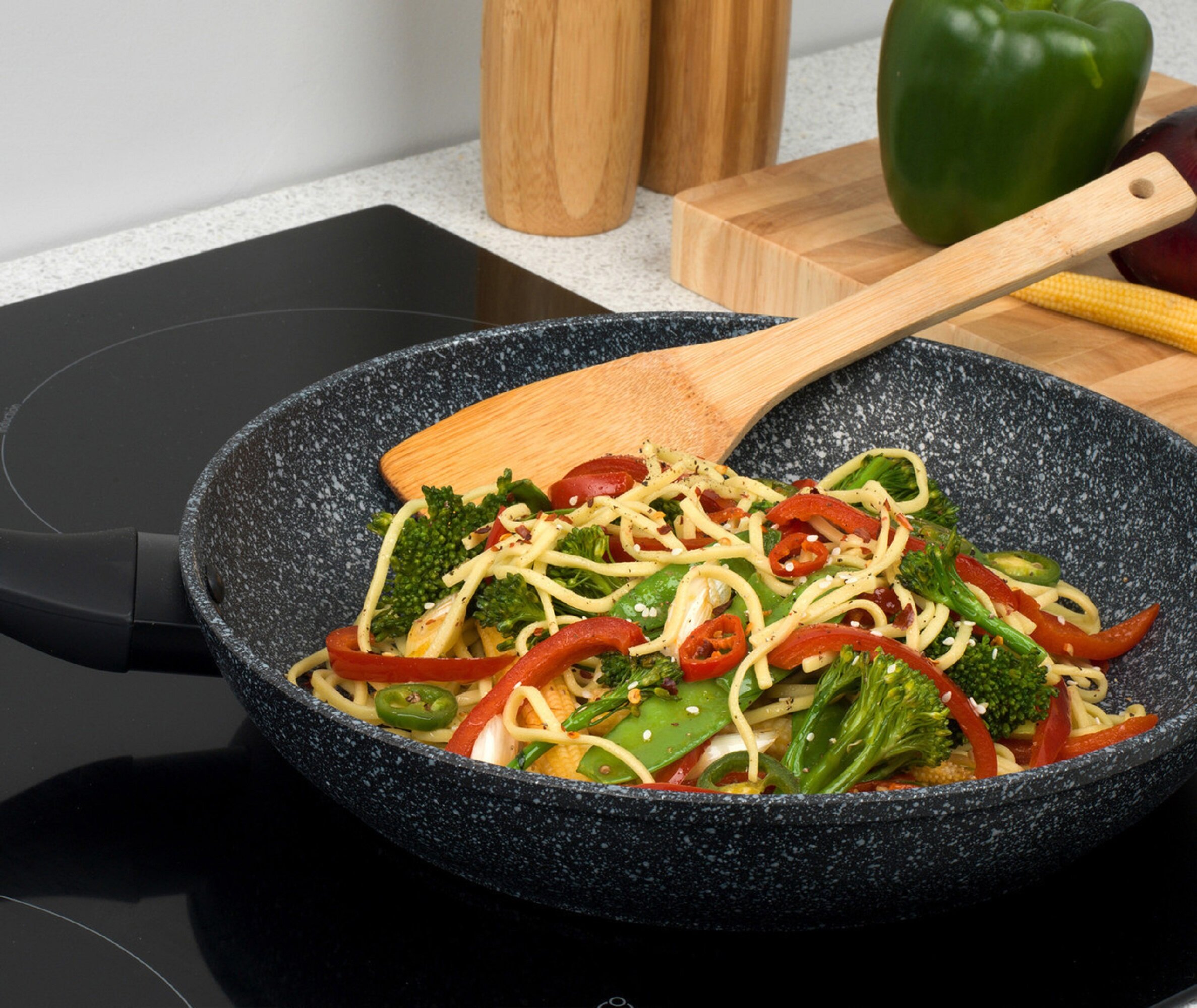 Patelnia SALTER Megastone to połączenie praktyczności i estetyki, stworzona z myślą o wygodnym gotowaniu każdego dnia. Jej solidna konstrukcja i powłoka wolna od PFOA sprawiają, że przygotowywanie posiłków jest bezpieczne i komfortowe. Dzięki przemyślanemu designowi i funkcjonalności patelnia sprawdzi się zarówno przy szybkim smażeniu, jak i duszeniu potraw.