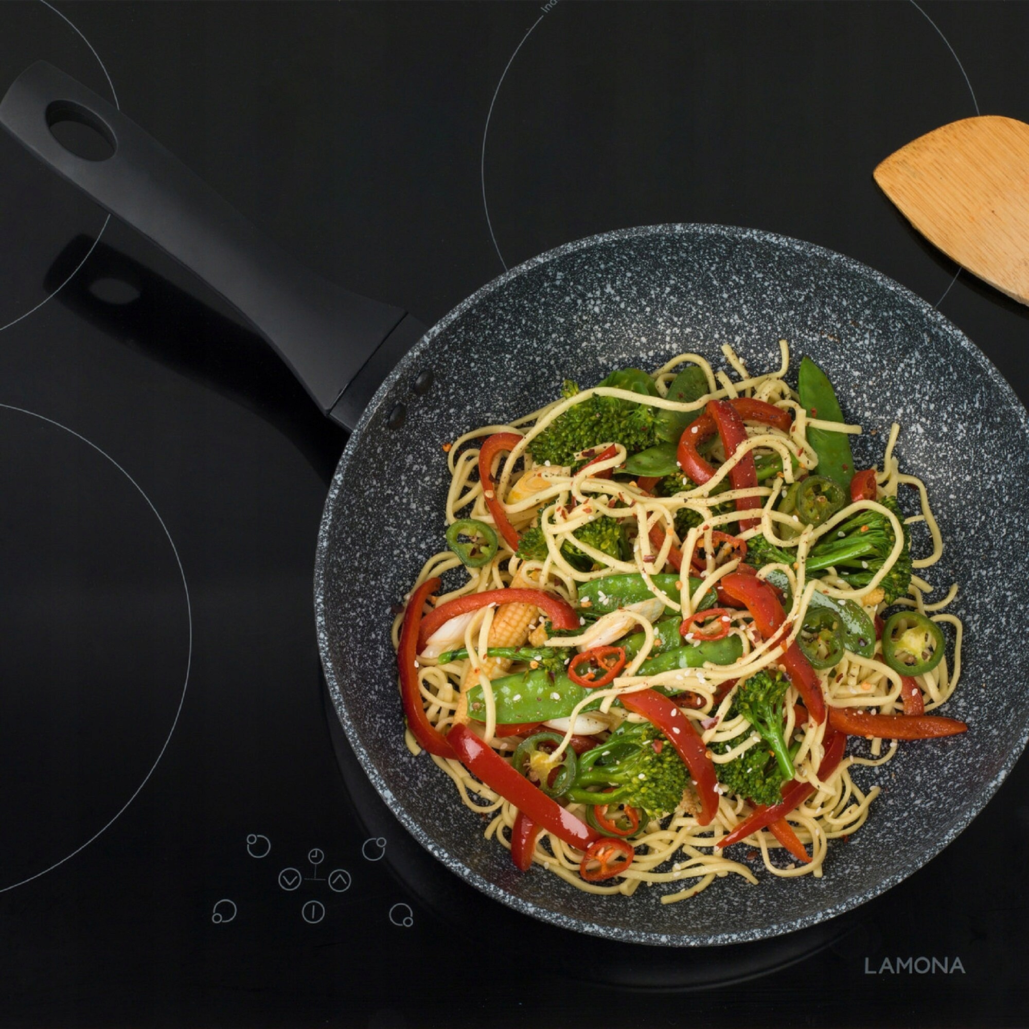 Patelnia SALTER Megastone została zaprojektowana z myślą o komforcie użytkowania. Ma ergonomiczny, miękki w dotyku bakelitowy uchwyt, który oferuje pewny chwyt i bezpieczeństwo podczas gotowania. Jej lekka konstrukcja, ważąca zaledwie 828 g, sprawia, że manewrowanie nią jest wyjątkowo łatwe, nawet podczas przygotowywania skomplikowanych potraw. Dodatkowo wyprofilowane brzegi ułatwiają mieszanie potraw oraz przewracanie większych kawałków jedzenia, takich jak naleśniki czy omlety, bez ryzyka ich uszkodzenia.