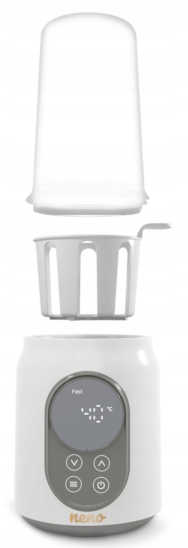 Urządzenie jest uniwersalne - możesz podgrzewać i sterylizować nie tylko butelki, ale i słoiczki z pokarmem dla Twojego maluszka. Średnica koszyczka to około 8 cm, a więc zmieścisz w nim różnej wielkości butelki i części zamienne do laktatorów. Dzięki produktowi Neno Luna w wygodny sposób zadbasz o właściwą higienę akcesoriów dla swojego dziecka.