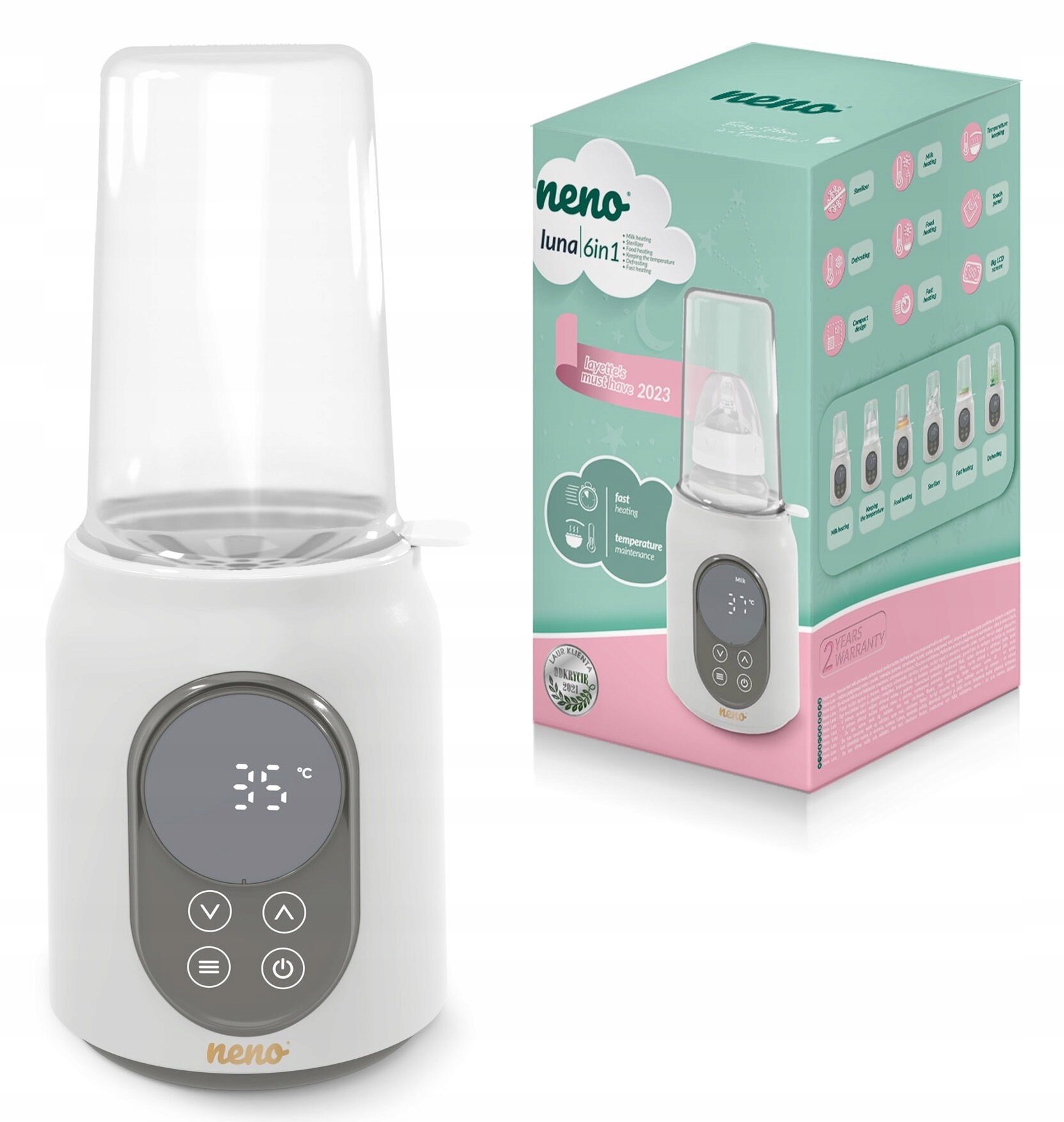 Urządzenie łączy w sobie aż 6 funkcji: rozmrażania, podgrzewania mleka, sterylizacji, szybkiego podgrzewania, podgrzewania posiłków i utrzymywania temperatury. Dzięki produktowi Neno Luna oszczędzasz nie tylko czas, ale także miejsce w kuchni.