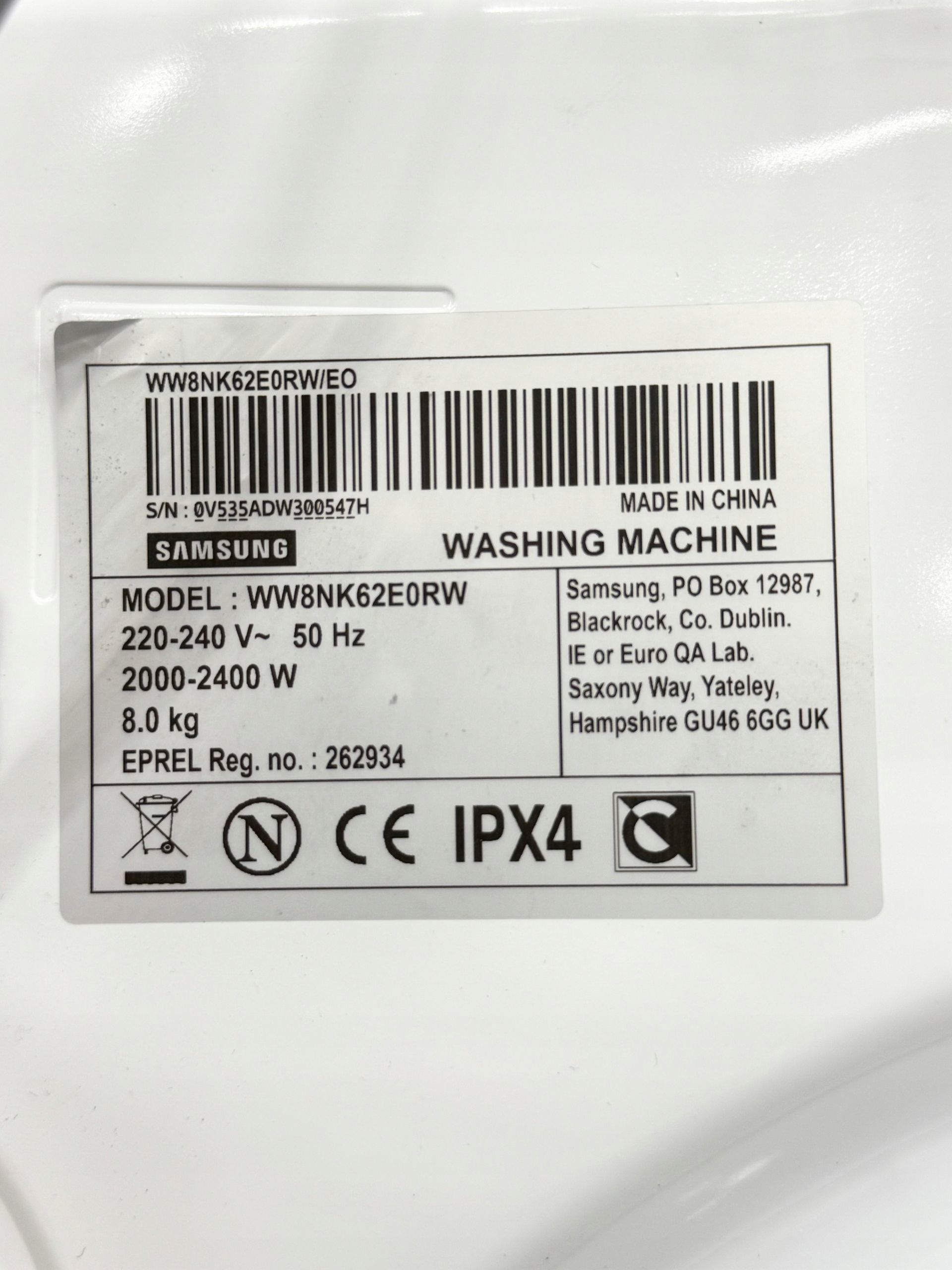 Kod producenta: WW8NK62E0RW/EO