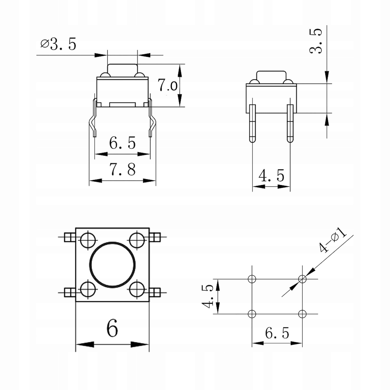 Przełączniki DIP tact 6x6x7 mm 20 szt. LONGKUN