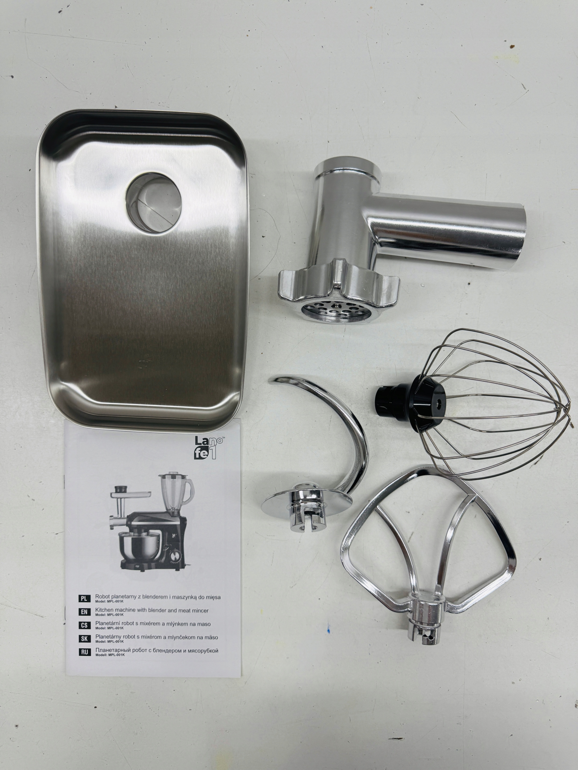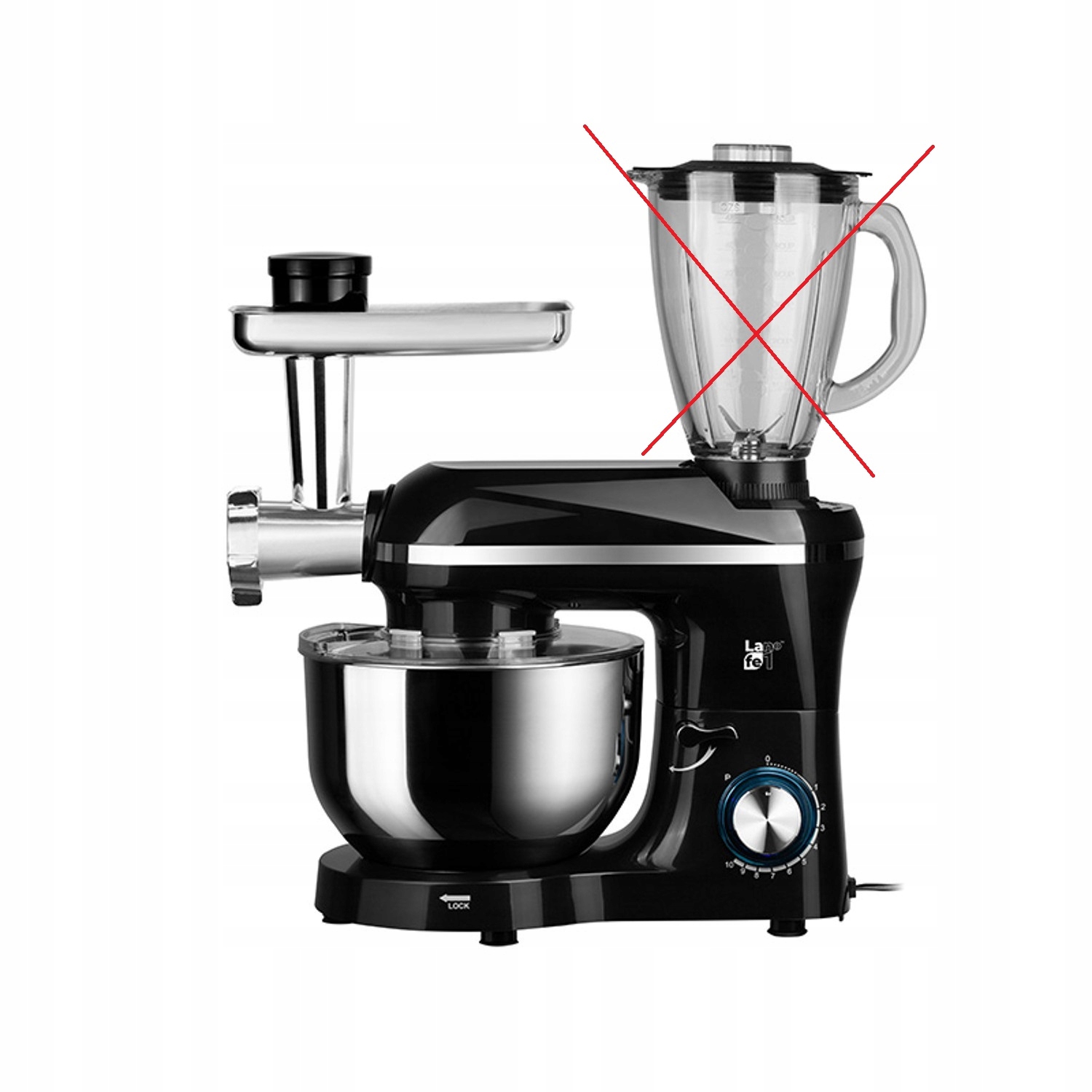 Mocny silnik Dzięki silnikowi o mocy 1000 W urządzenie bez trudu upora się z każdym wyzwaniem, jakie przed nim postawisz. Różne końcówki dołączone do urządzenia z łatwością rozdrobnią, pokroją lub skruszą składniki. Dodatkowo maszynka do mielenia mięsa z wieloma końcówkami pozwala poczuć się jak profesjonalny szef kuchni i zaszaleć. Pojemna misa na ciasto Urządzenie Lafe MPL-001K idealnie sprawdzi się w kuchni, w której dużo się piecze. W dużej misce ze stali szlachetnej o pojemności 5 litrów zmieścisz składniki nawet na dużą blachę ciasta. Dodatkowo specjalna pokrywka dołączona do miksera, zapobiega rozbryzgiwaniu się ciasta na blat kuchenny, dzięki czemu Twoja kuchnia pozostanie czysta.